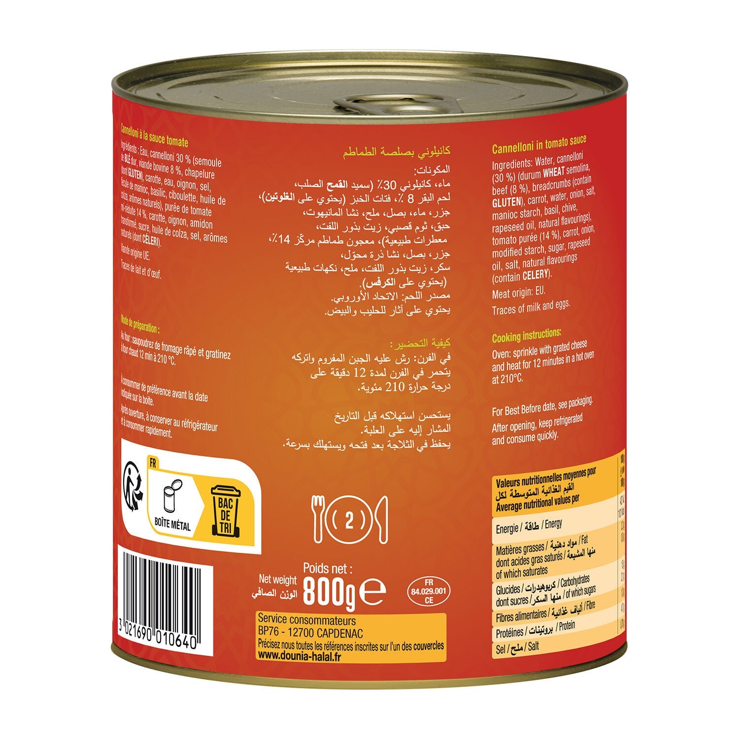 Ready Meal Cannelloni with Halal Tomato Sauce DOUNIA HALAL