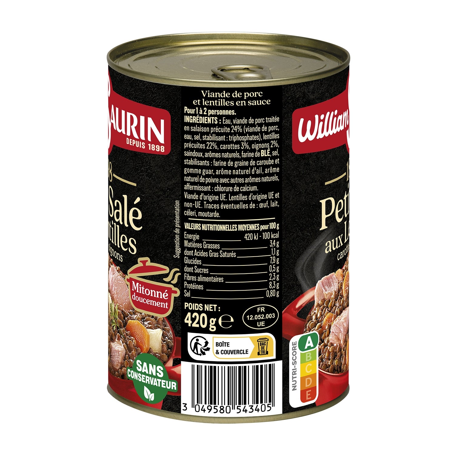Preservative-free In Capdenac (12), our Petit salé aux lentilles is gently simmered: tasty pieces of pork and lentils cooked with pearl onions and melting carrots. Preservative-free, our meats have a natural color. Ingredients selected and cooked with care, to make you enjoy good times at the table!