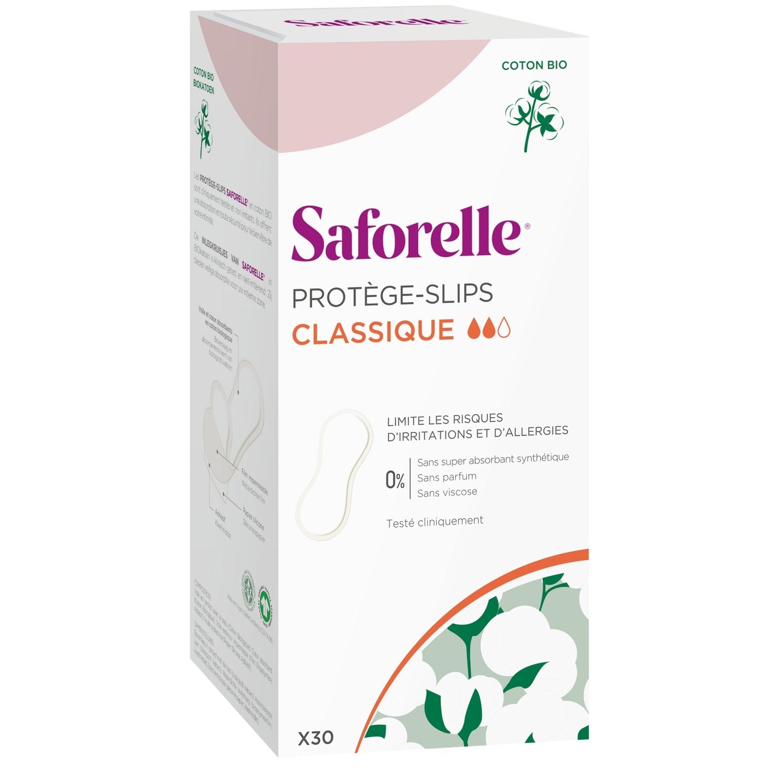 SAFORELLE CLASSIC ORGANIC PANTY LINERS X30