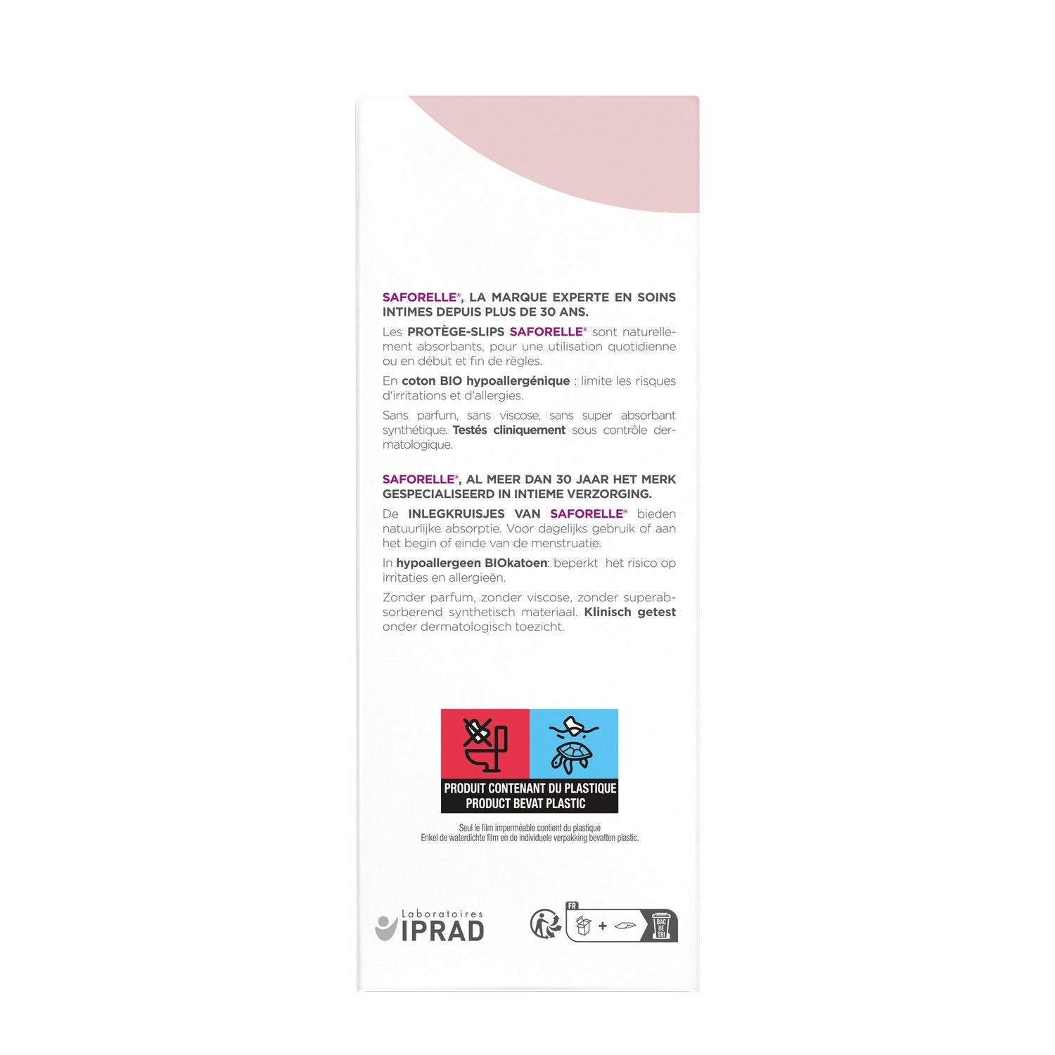 Saforelle organic cotton panty liners are hypoallergenic, clinically tested and non-irritating. They provide safe absorption for the well-being of your intimate areas. They help reduce the risk of irritation and allergies. Free from synthetic super absorbents, perfumes, and viscose.