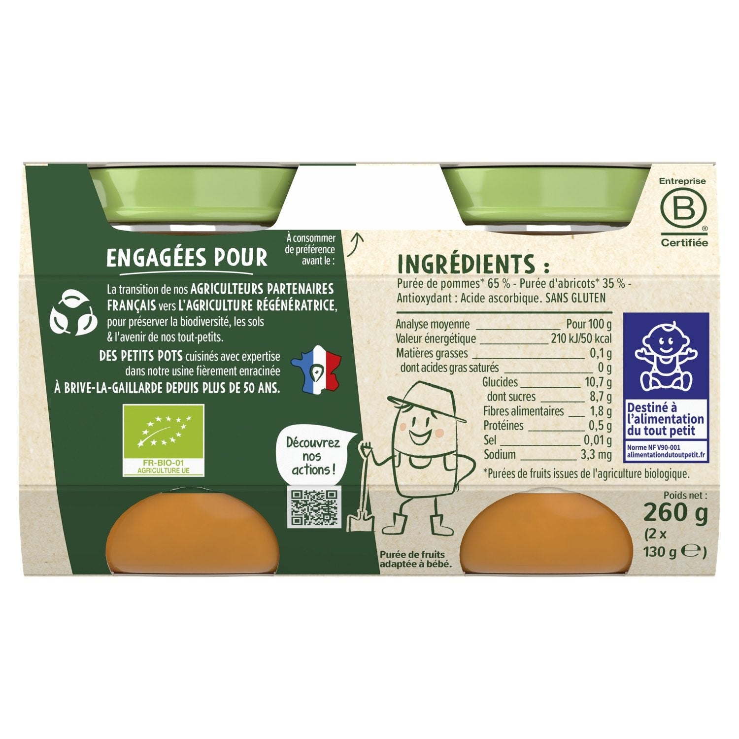 Ingredients: Apple puree* 65% - Apricot puree* 35% - Antioxidant: Ascorbic acid. *Fruit purees from organic farming. GLUTEN FREE