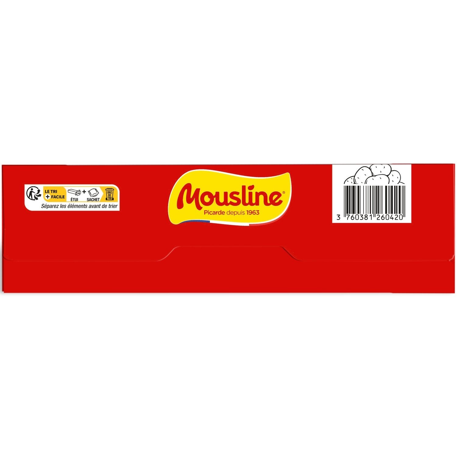 Discover our MOUSLINE MASHED-MACHINE mashed potatoes, with a unique texture, thanks to small, melt-in-your-mouth pieces, unique on the French market. The potatoes are mostly harvested within 30km of our factory, in the Hauts-de-France region, for the production of our flakes. To achieve this specific texture, this recipe contains granules, the potatoes of which come from Germany. MOUSLINE is committed to offering you the best in mashed potatoes: carefully selected potatoes, steamed, simply passed through a giant masher before being dried into flakes, then cooked with our other delicious ingredients. Recyclable cardboard. One box contains 3 sachets for 4 people. MOUSLINE, and everyone is happy!