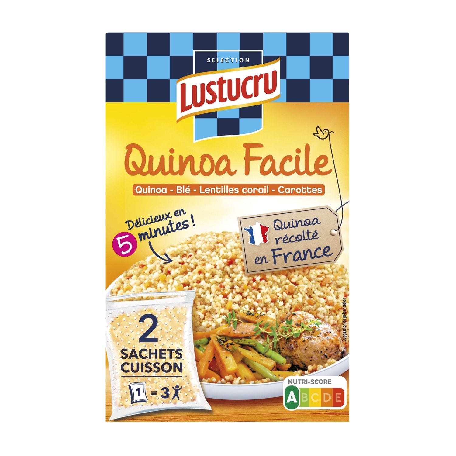 Discover Lustucru's Easy Quinoa, a delicious blend of quinoa, grains, and vegetables with a melt-in-your-mouth, crunchy texture, ready in just 5 minutes. Served hot as a side dish or cold in a salad, this blend will satisfy all your cravings.