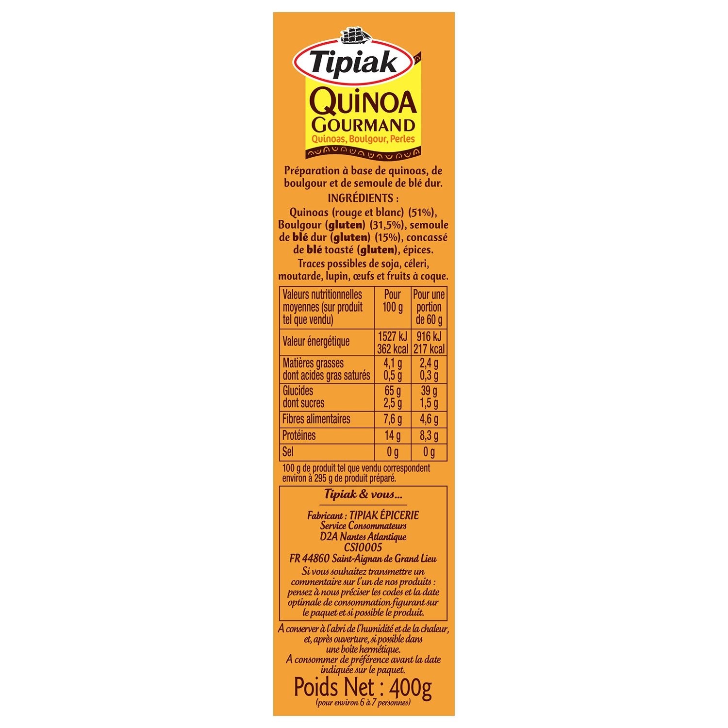 Vary your meals with Tipiak Gourmand Quinoa, a unique and tasty blend of quinoa, bulgur and pearls for the whole family.