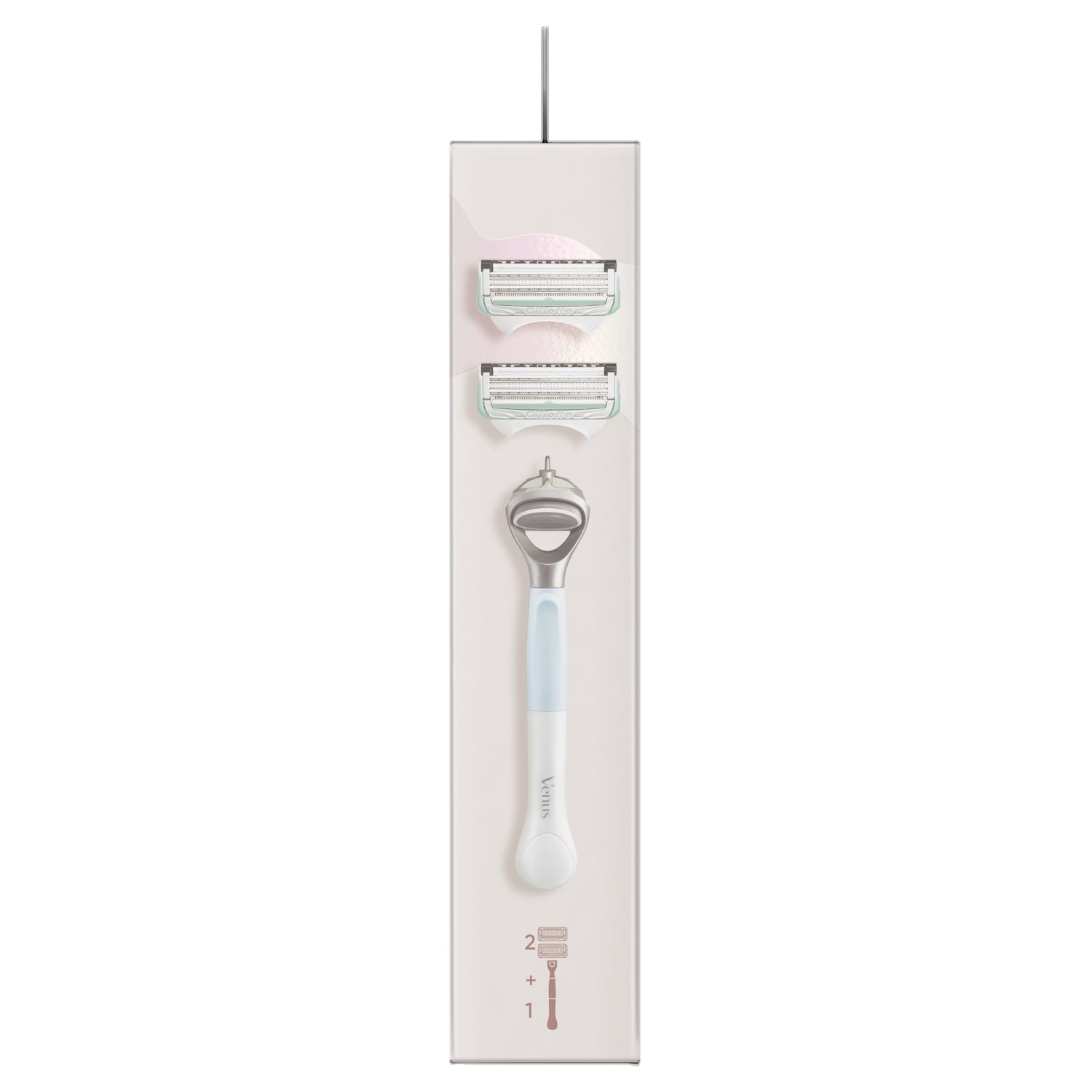The Venus Skin & Pubic Hair Razor is specially designed to protect this area from shaving irritation. Its irritation guard bar and optimally spaced blades allow the blades to cut hair while barely touching the skin. Razor refills also feature a precision edge trimmer on the back of the blades for hard-to-reach areas. For best results, use the entire Venus + Satin Care Skin & Pubic Hair range.