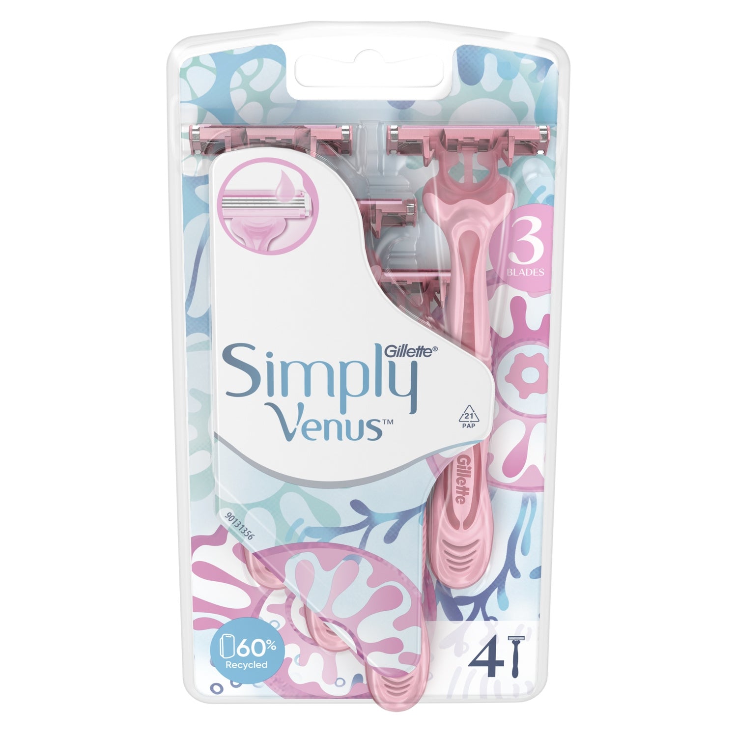Gillette Venus Simply 3 women's disposable razors offer a close shave at an incredible value. They feature a pivoting 3-blade head for hard-to-shave areas and a lubricating strip for easy glide. Enjoy a closer, more comfortable shave (vs. the Venus Simply 2 razor).