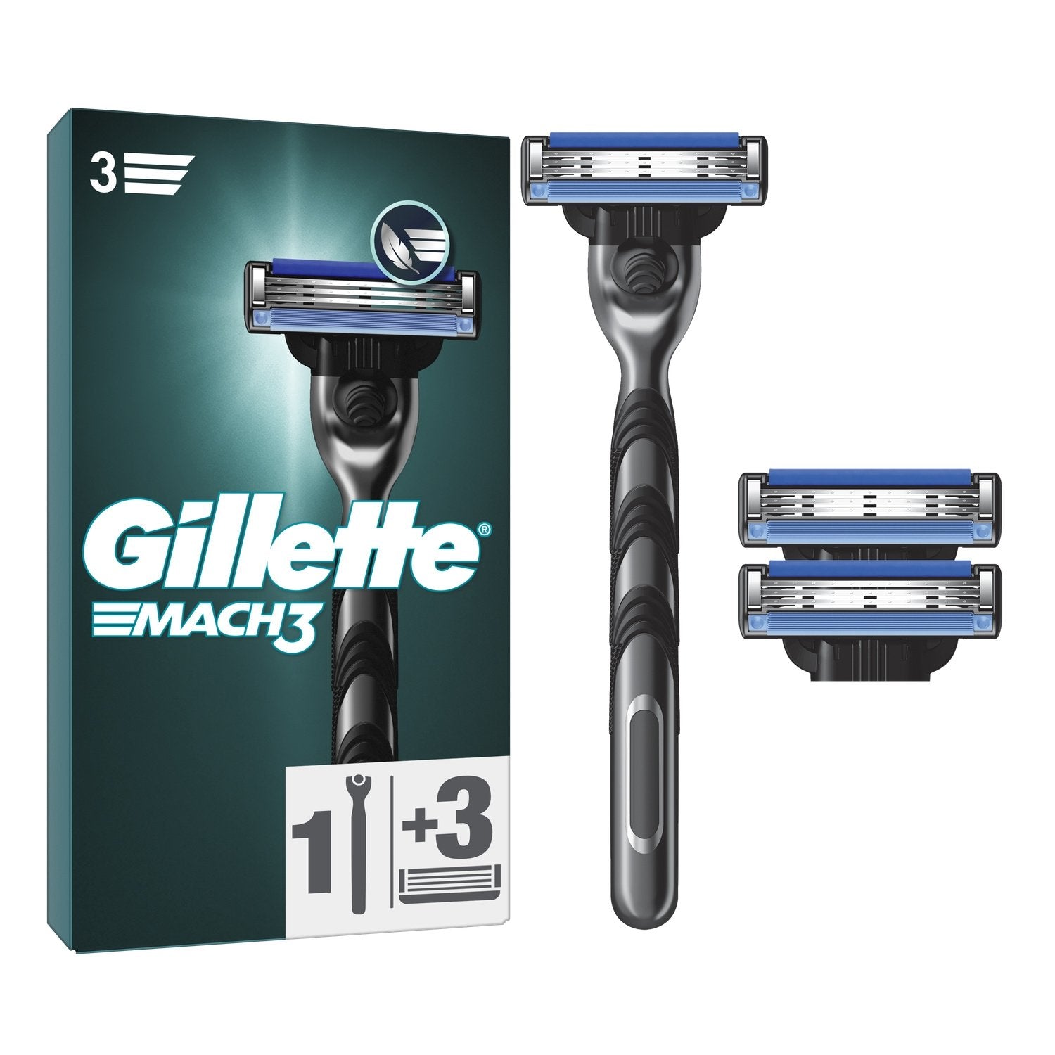 Gillette Mach3 Men's Razor, 1 Gillette Handle, 3 Blade Refills, With Lubricating Strip For Smooth Glide And New Blade Coating Designed To Reduce Pressure On Skin