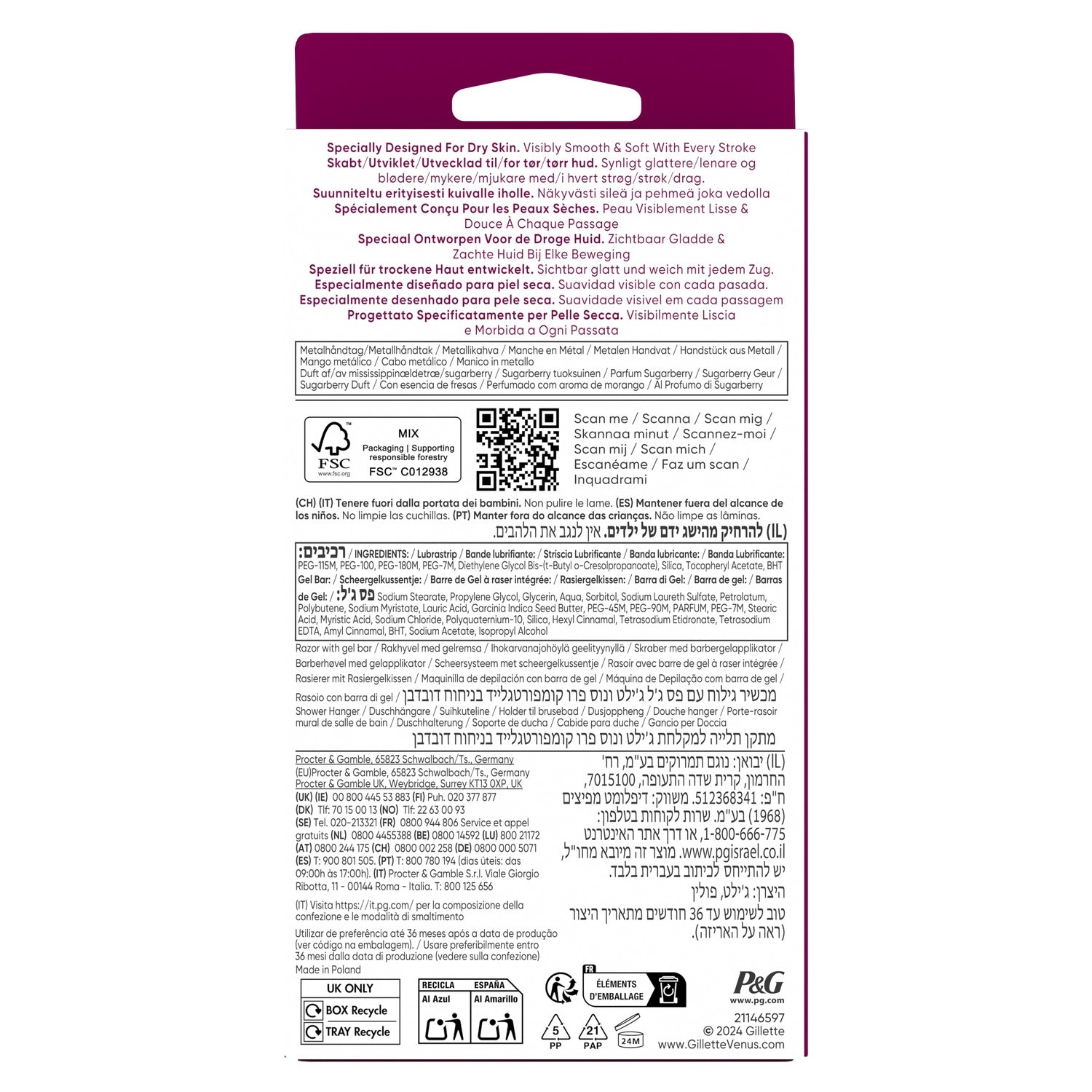 Gillette Venus Pro ComfortGlide Sugarberry Scent Women's Razor, 1 Handle + 1 Refill Blade, With Olay Moisturizing Conditioner, Reusable Metal Handle & Shower Cradle