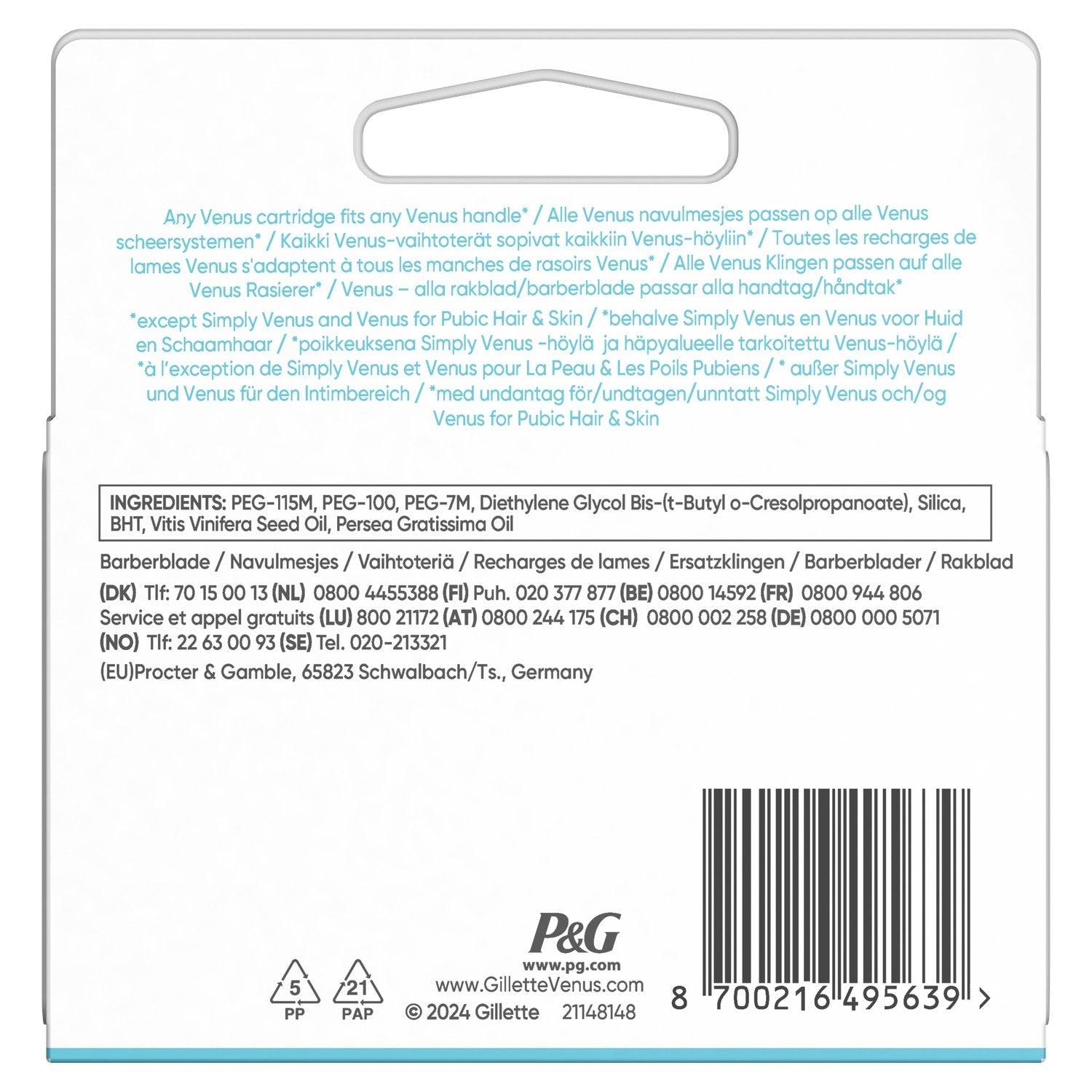 Looking for a quick and easy shave? Discover Gillette Venus Smooth blade refills for women, designed to meet the unique needs of your skin. Our Smooth blade refills feature 3 ultra-sharp blades for a fast, close shave. Our SkinCushion lubricating strip helps protect your skin from shaving irritation. And if you're looking for more ways to give your skin the love it deserves... Discover the entire range of Venus products, from razors and shaving gels to disposable razors, facial razors, and more.