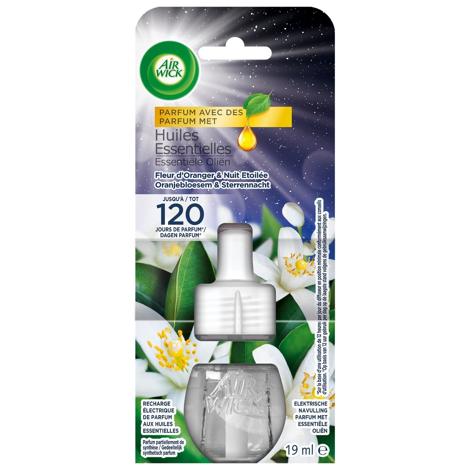 The Air Wick electric refill allows you to neutralize odors and create the scented ambiance of your choice in every room of your home. It diffuses continuously and efficiently with adjustable intensity on 5 levels so your home always remains fresh and welcoming. Discover a refined orange blossom fragrance with essential oils containing ingredients of natural origin*, designed to offer you a unique olfactory experience. *The formula contains at least 50% ingredients of natural origin