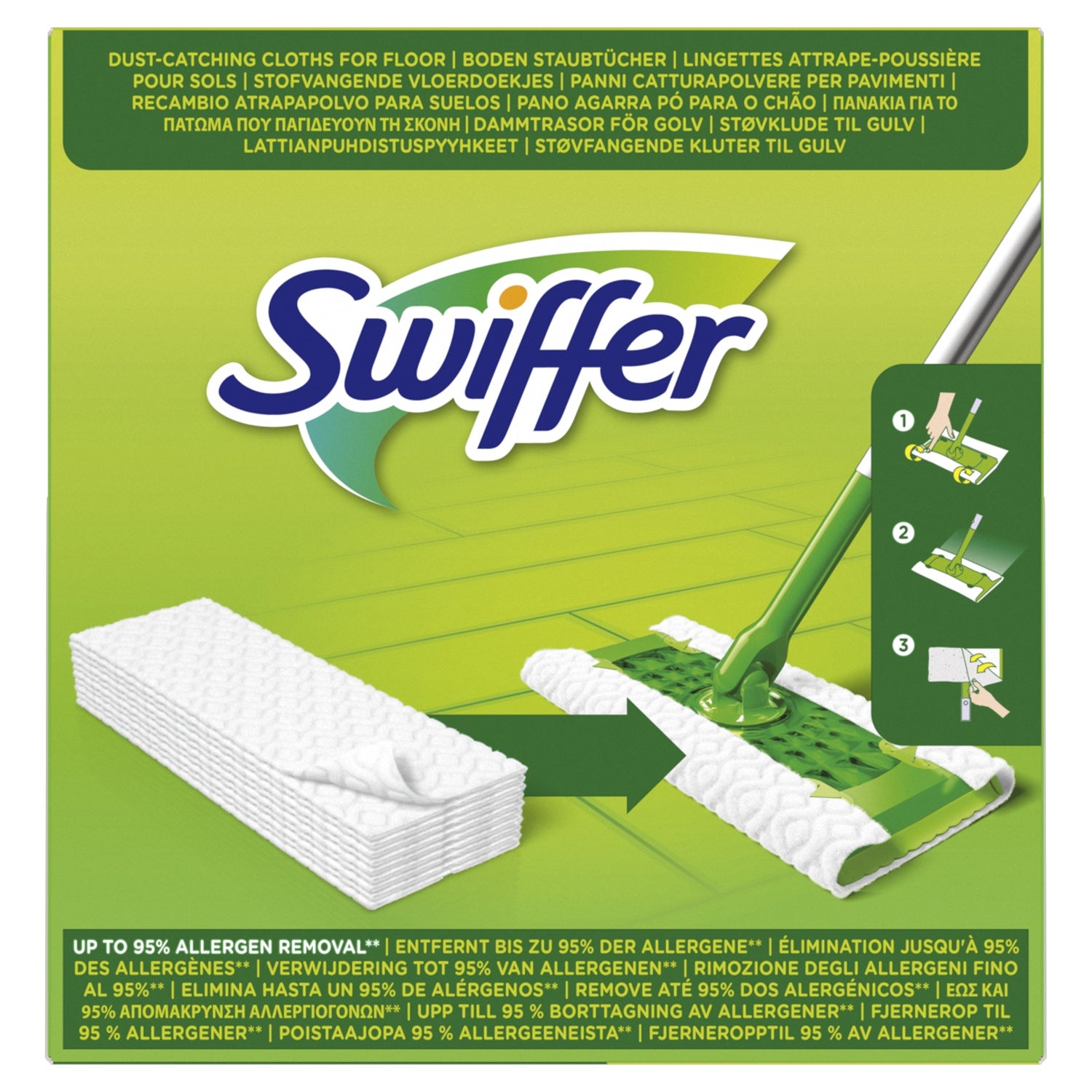 Catches and holds 3 times more dust, dirt and hair than a conventional broom, 36 Dry Floor Wipe Refills (broom sold separately), The cleaning you dream of in the time you have, It can be used on virtually any dry floor surface without leaving any residue, Attach the wipe to the Swiffer Dust Catcher Mop, its 360° head helps reach under the bed, sofa or closet, Ideal for catching pet hair