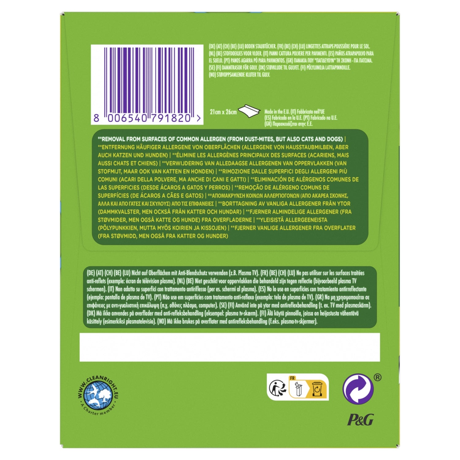 Swiffer wipe refills attach to the Sweeper to capture and retain dirt, dust, and hair on all floors in your home. They are 3 times more effective than a traditional broom. They can also be used alongside your vacuum cleaner to capture remaining fine dust, or as an intermediate cleaning tool to avoid having to deep clean too often. How? Why? The thickness of the wipes and their particular pattern combined with their electrostatic action allow them to capture all the dust and retain it in the wipe. Plus, thanks to the Swiffer's 360° pivoting head, you can clean everywhere, even hard-to-reach places like under the refrigerator, stove, and dishwasher, under beds and sofas, as well as nooks and crannies that are sometimes inaccessible to traditional brooms and mops. Isn't that wonderful? With Swiffer dry cleaning wipes, cleaning has never been so easy and fast. Good to know: They are particularly suitable for picking up pet hair, which is constantly shedding, or if you are allergic to dust. Swiffer wipes can be used on all hard surfaces such as: linoleum, vinyl and ceramic floors, whether waxed or not, as well as sealed parquet floors.