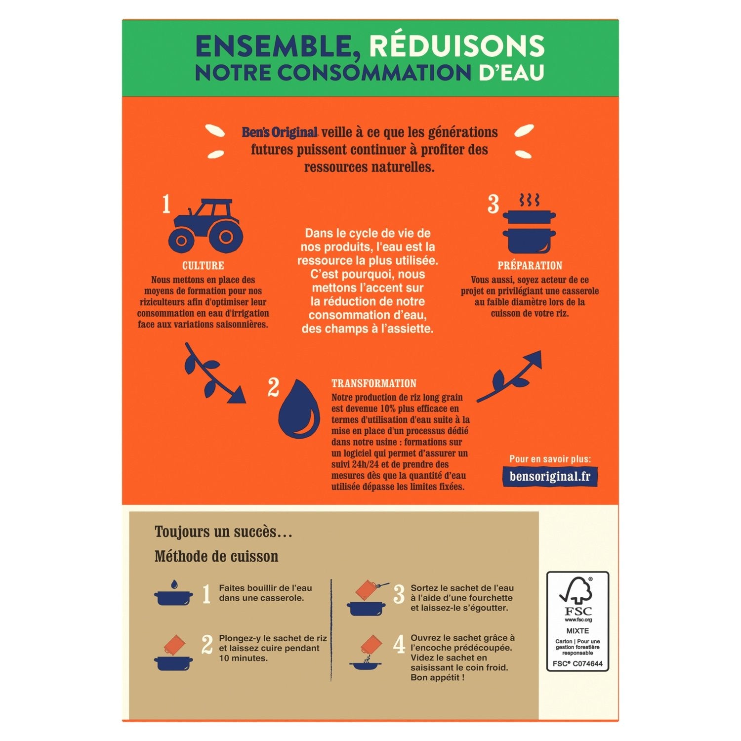 Try our Ben's Original™ Extra Tender Long Grain Rice today and create a delicious recipe you can enjoy with family and friends. Ultra easy to prepare in 10 minutes thanks to the cooking bag. Ben's Original™ offers you a rice that's quick to prepare and sticks well. As good in salads as it is as an accompaniment to your meat or fish, Ben's Original™ rice is the result of a careful selection of the finest grains from the countless varieties available. Nutriscore A Yuka score: 90/100