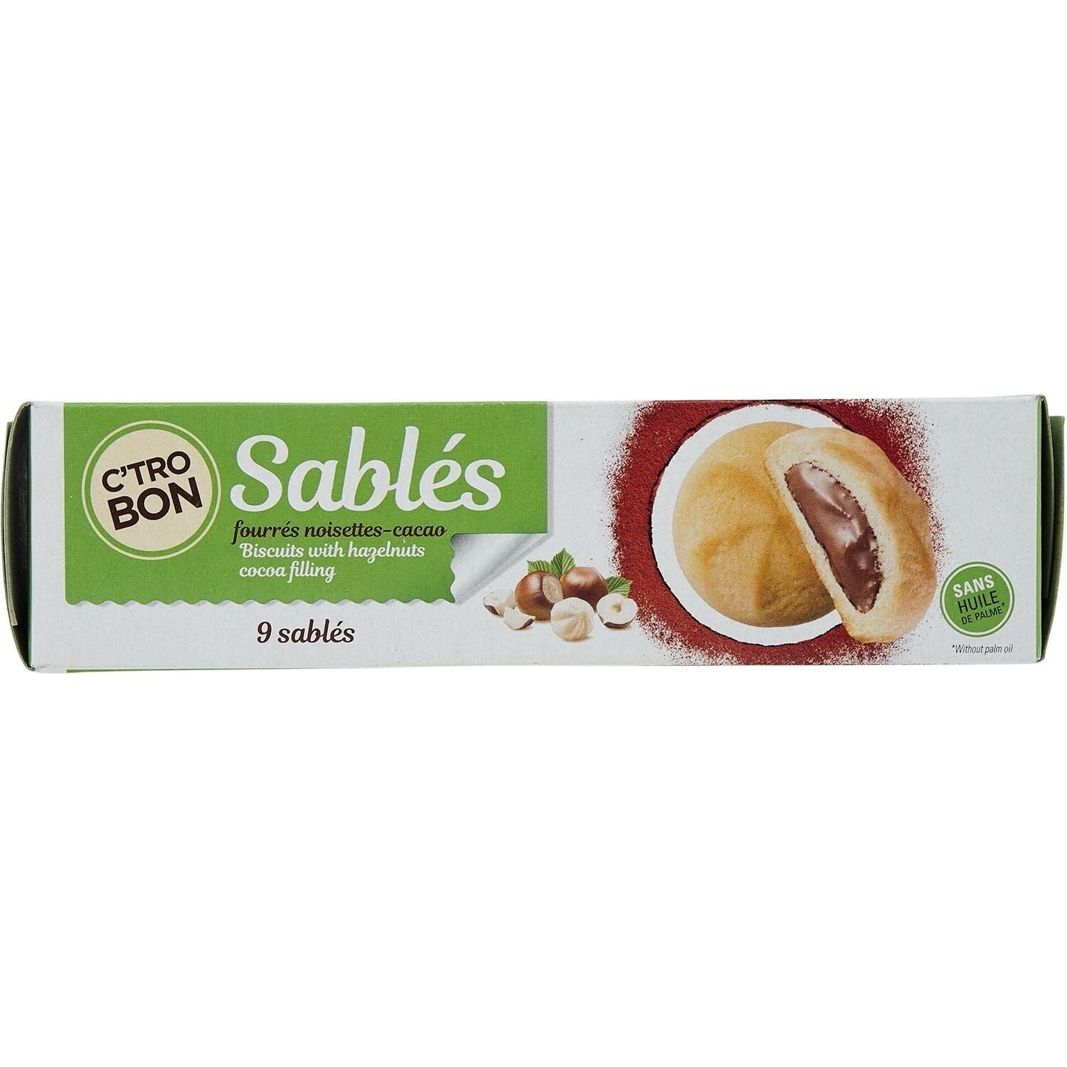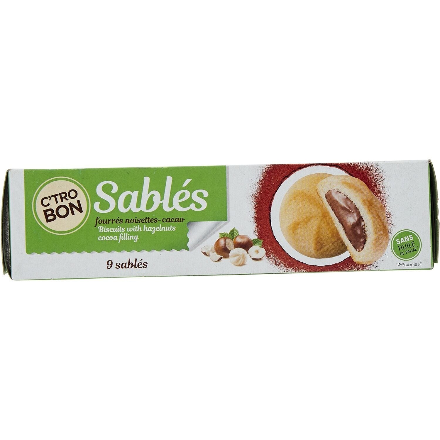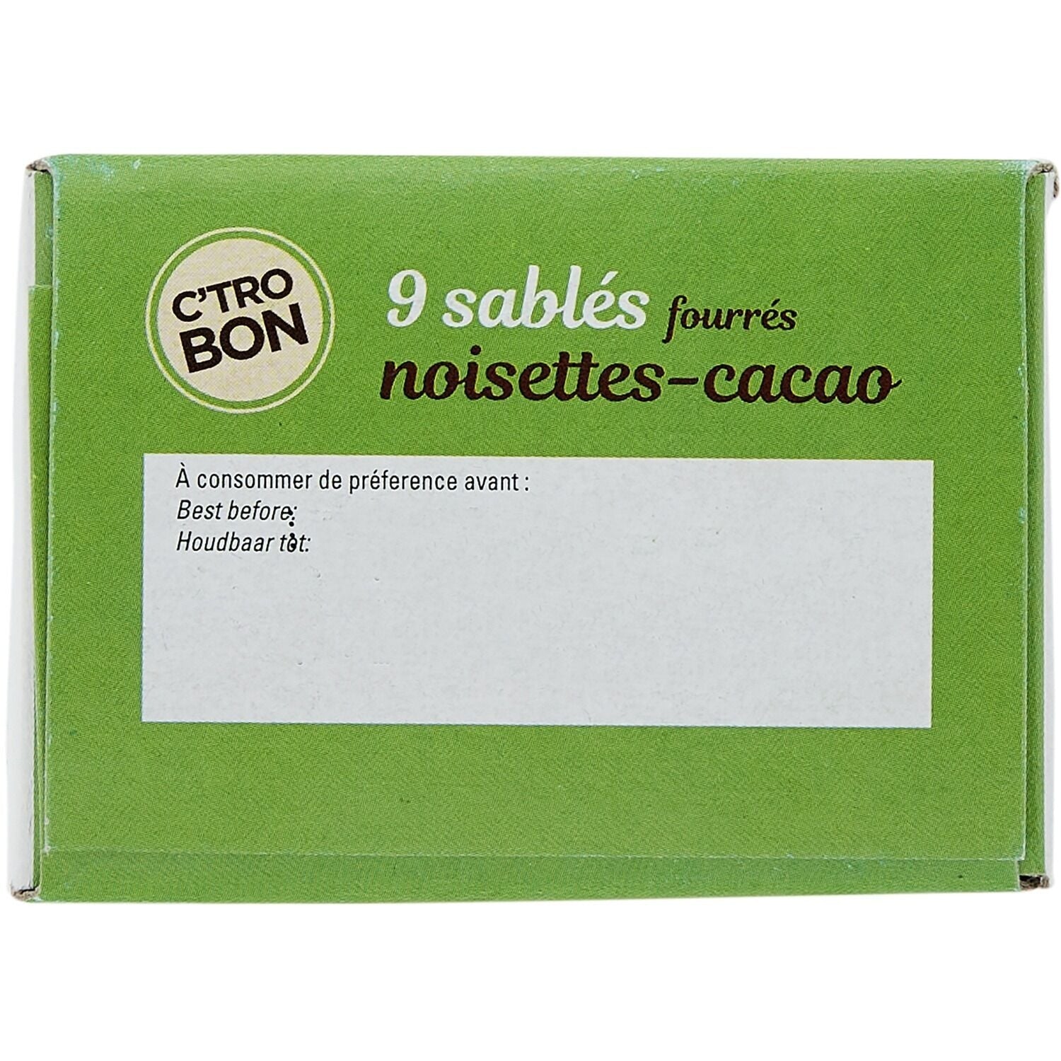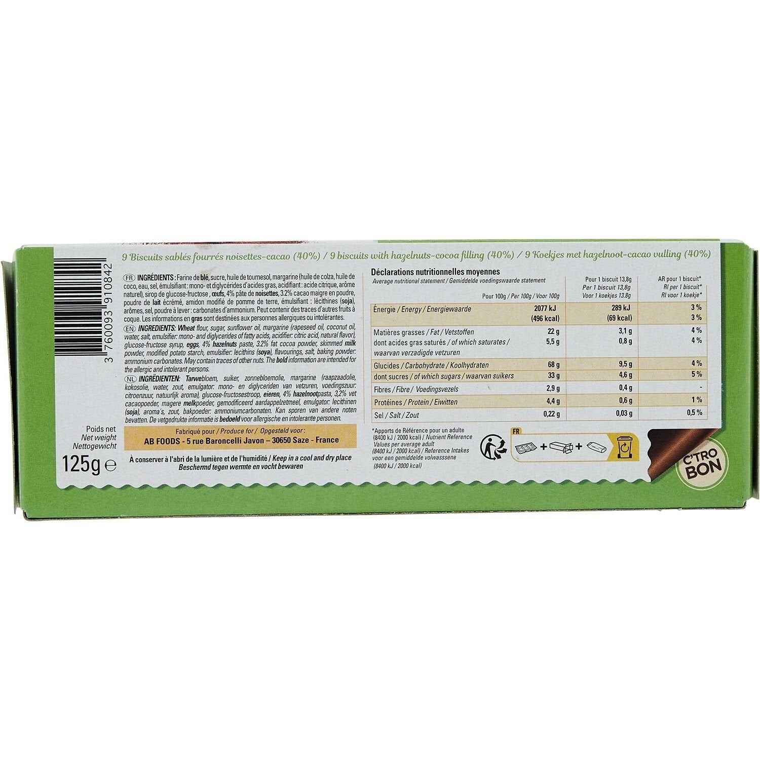 9 shortbread biscuits filled with hazelnuts and cocoa (40%)