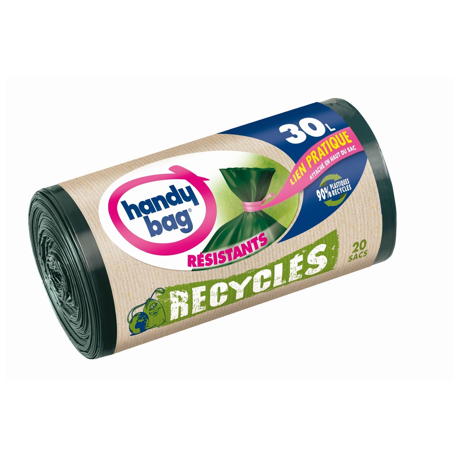DetailsHANDY BAG RECYCLED garbage bags PRACTICAL LINK 30L Unit weight: 362 grs EAN barcode: 4008871205094 Brand: HANDY BAG