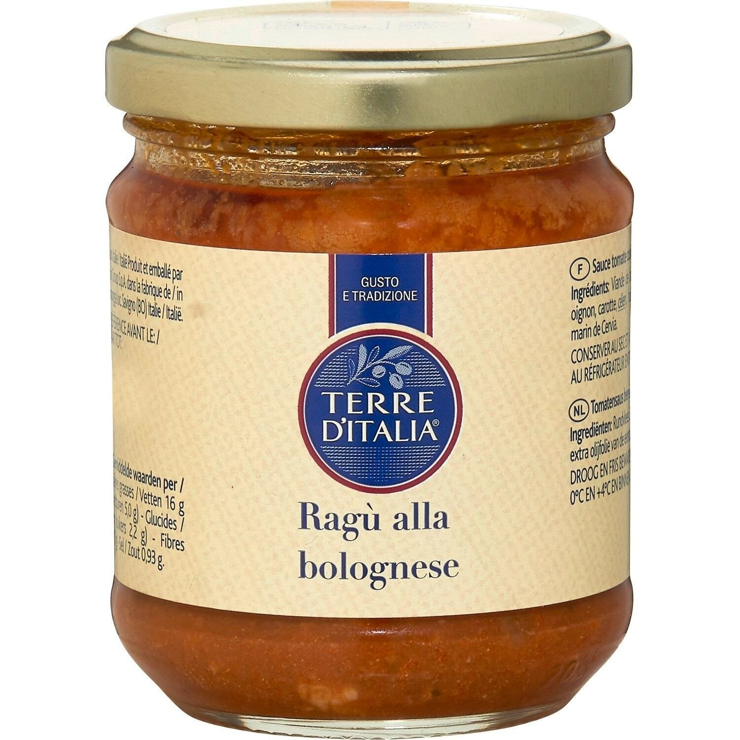 Beef 36.3%, tomato puree, pork belly 21.1%, onion, carrot, celery, extra virgin olive oil, double tomato concentrate, Cervia sea salt.