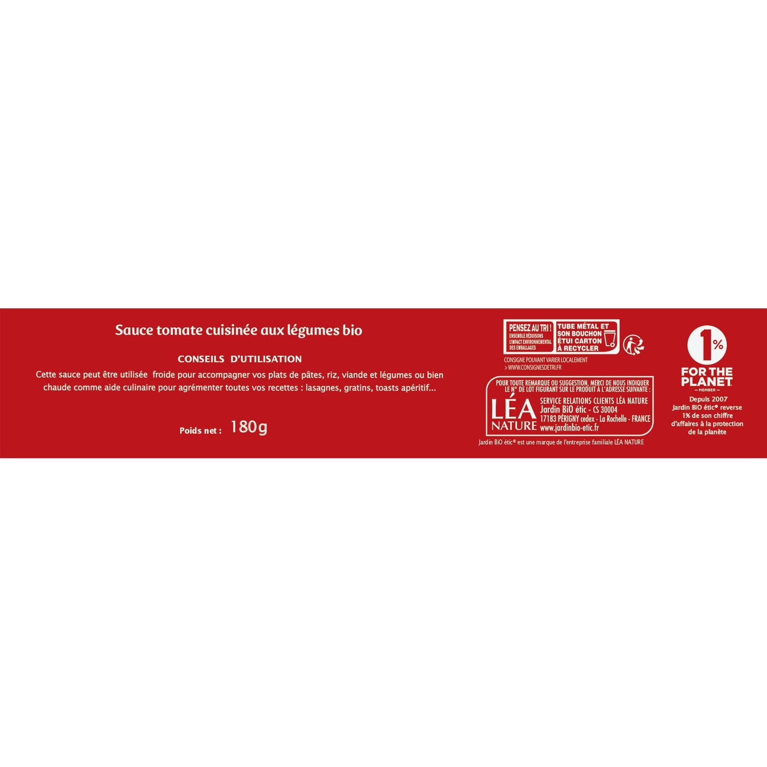 DetailsTomato sauce cooked with organic vegetables Unit weight: grs EAN barcode: 3456300009064 Brand: JARDIN BIO ETIC