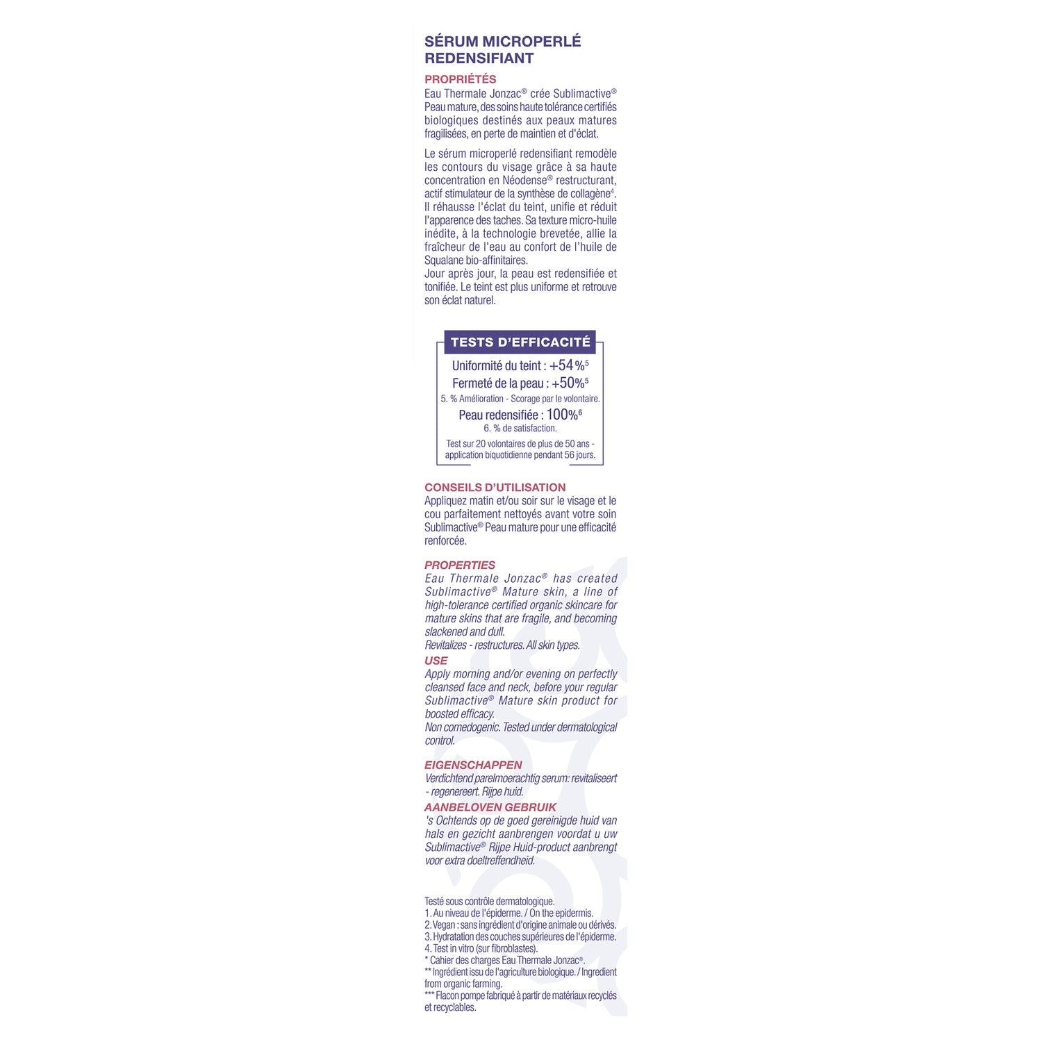 Sublimactive Serum for Mature Skin, Organic Redensifying Micro-Pearl, JONZAC Thermal Spring Water