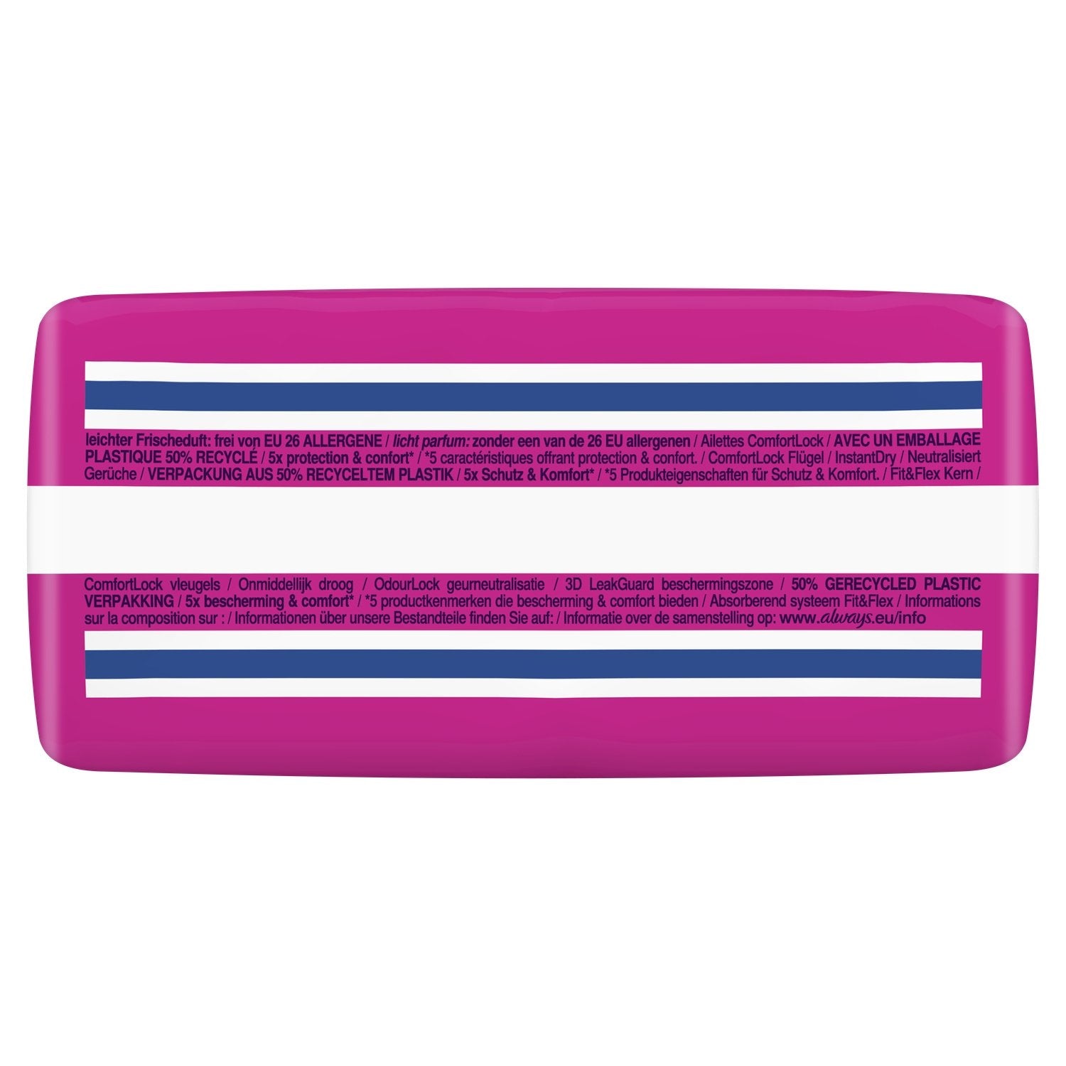 Pads with an ultra-soft protective topsheet for incredible comfort and leak protection. ComfortLock wings are designed to fit perfectly under all types of underwear. Soft and flexible design that adapts to your body. OdourLock technology with a pleasant scent that neutralizes odors (contains none of the 26 EU-listed allergens). Always Platinum pads with an ultra-soft protective topsheet are designed to prevent leaks, stay in place, and provide optimal comfort. With Always Platinum pads, you'll forget about having your period.