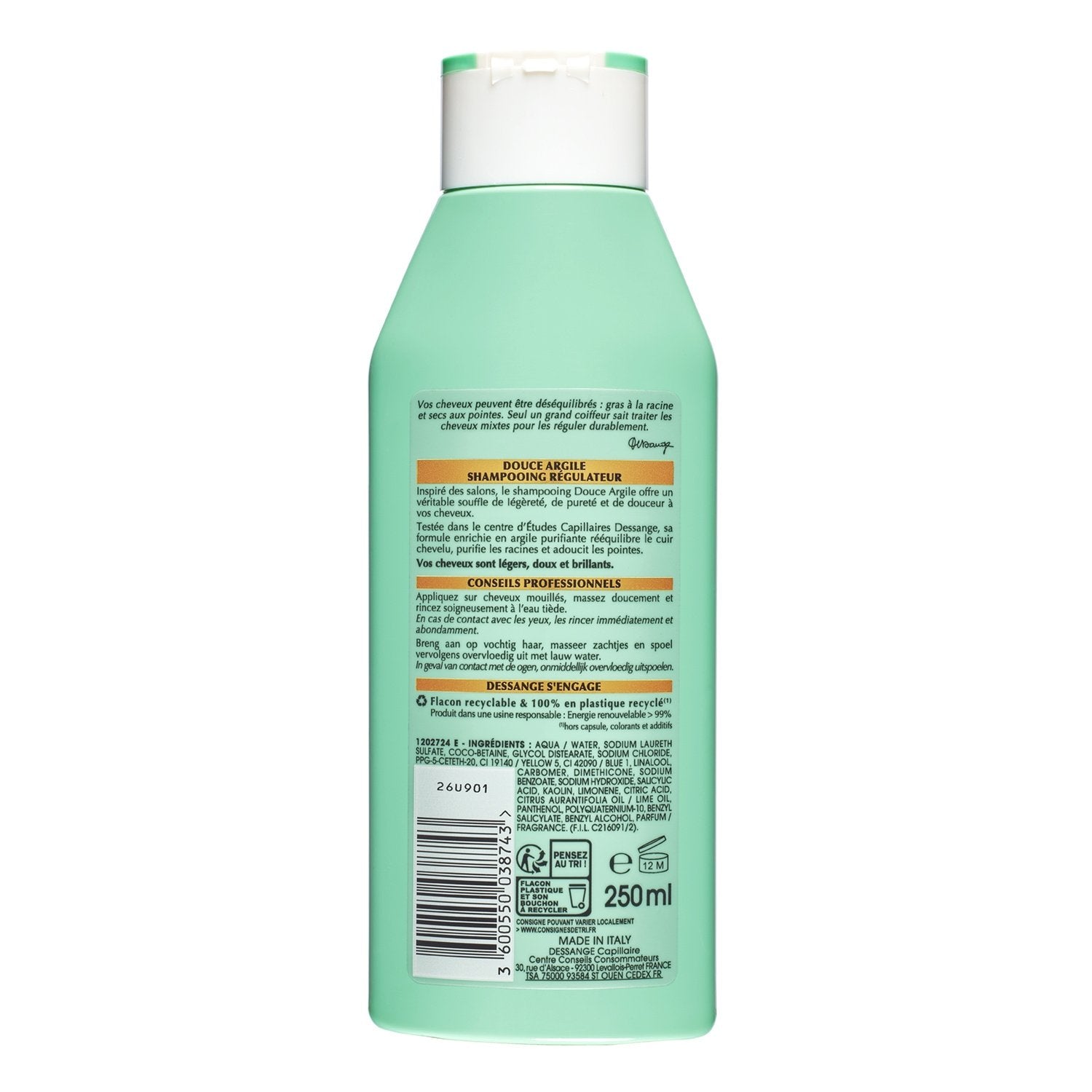 Its formula enriched with purifying clay rebalances the scalp, purifies the roots and softens the ends.