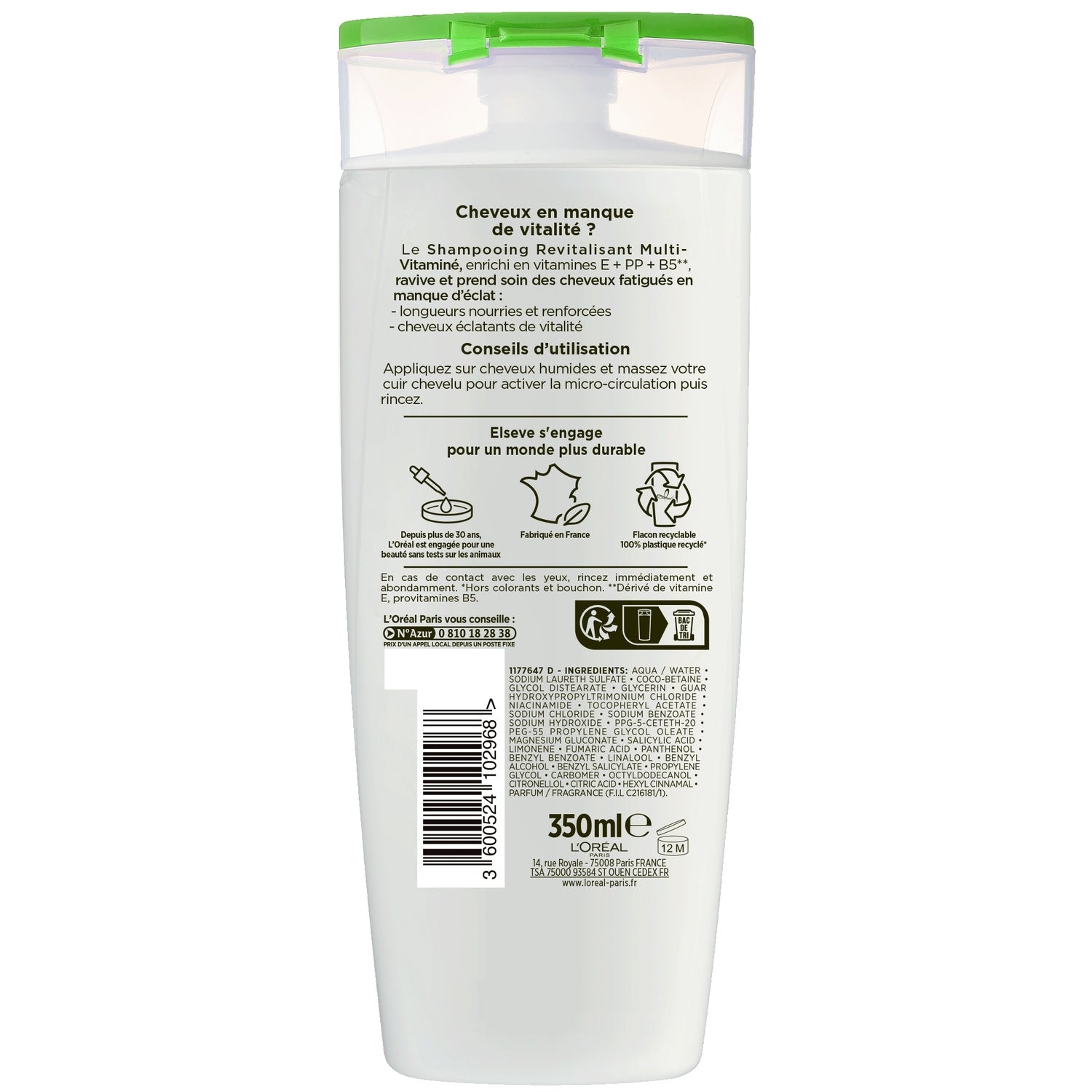 L'Oréal Paris Elseve Multi-Vitamin Revitalizing Shampoo for Normal Hair Enriched with Vitamins E + PP + B5 290.0MLT