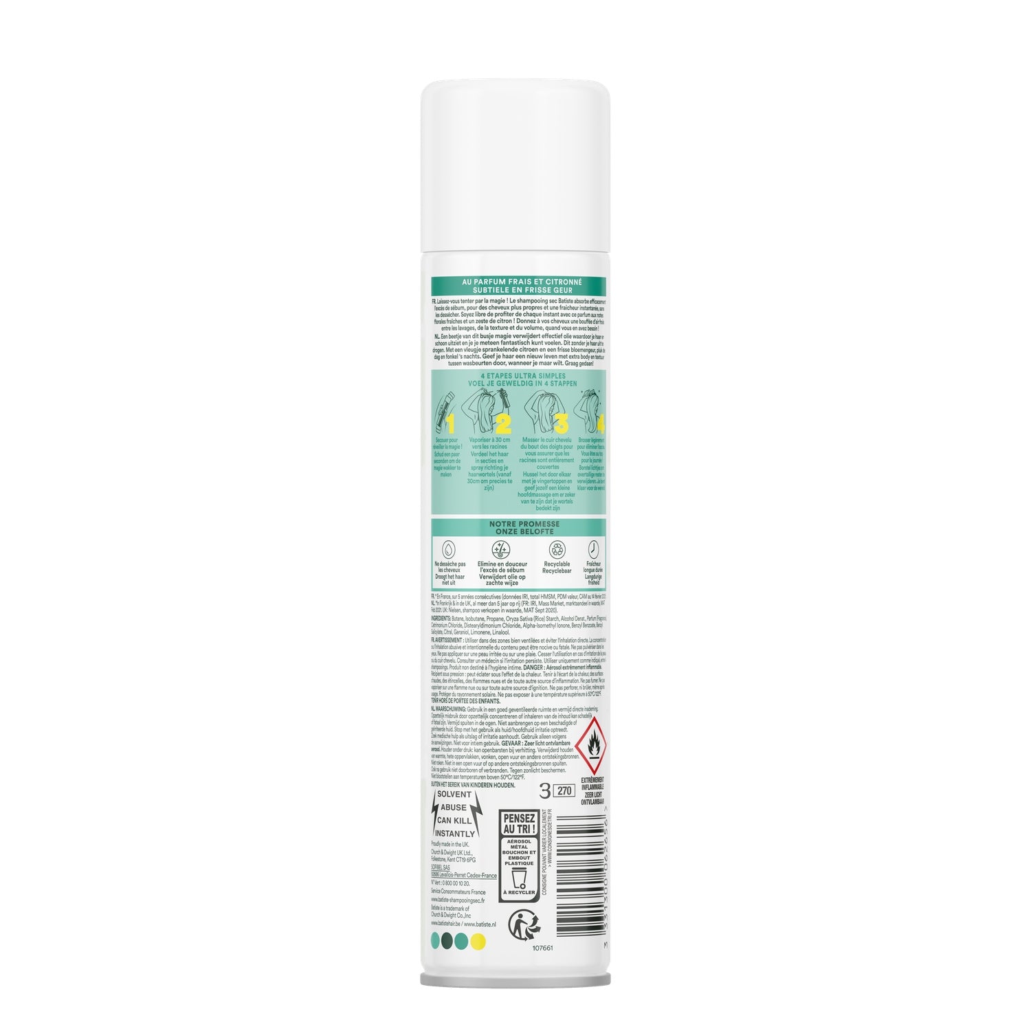 Batiste Original A long-lasting fragrance (24 hours) while preserving the base notes. Its formula based on rice starch powder helps absorb excess sebum from your hair to restore freshness and volume. No need for water or washing your hair to look your best! Its light fragrance gives you a pleasant feeling of cleanliness without having to wet it. The perfect spray for spacing out shampoos, for touch-ups during the day or to refresh and style limp hair before an evening out.