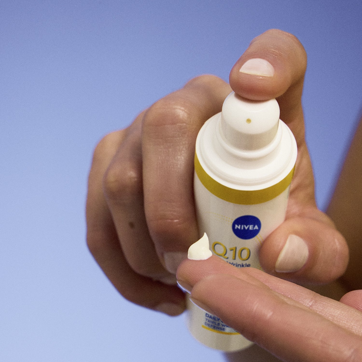 TRIPLE ANTI-WRINKLE DEFENSE Q10 Pure: Stimulates skin cell renewal and collagen production to reduce wrinkles GLYCOSTOP®: Helps prevent the effects of glycation, a process by which excess sugars in the skin can damage collagen and elastin, which can lead to the appearance of wrinkles and loss of firmness High Protection SPF 50: Protects against UVA and UVB rays 12h anti-shine - non-greasy Can be used as a makeup base if applied first. Invisible on all skin tones - no white residue