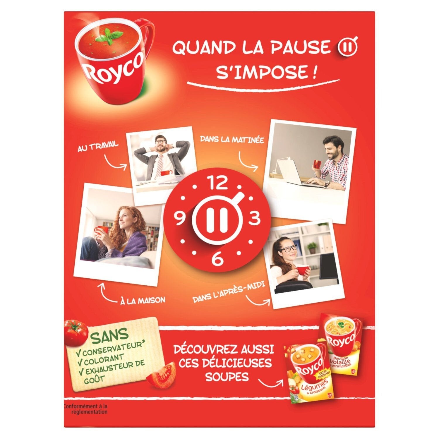 Discover our Velouté Tomates recipe, a soup with a light texture and a delicious tomato flavor with a hint of parsley for even more flavor. This delicious soup, without coloring, preservatives, or flavor enhancers and made in France near Avignon, will bring you pleasure and comfort at any time of day. Royco, when a break is needed! Also discover these delicious soups Royco Vegetables & Croutons Royco Broth Poultry & Vermicelli