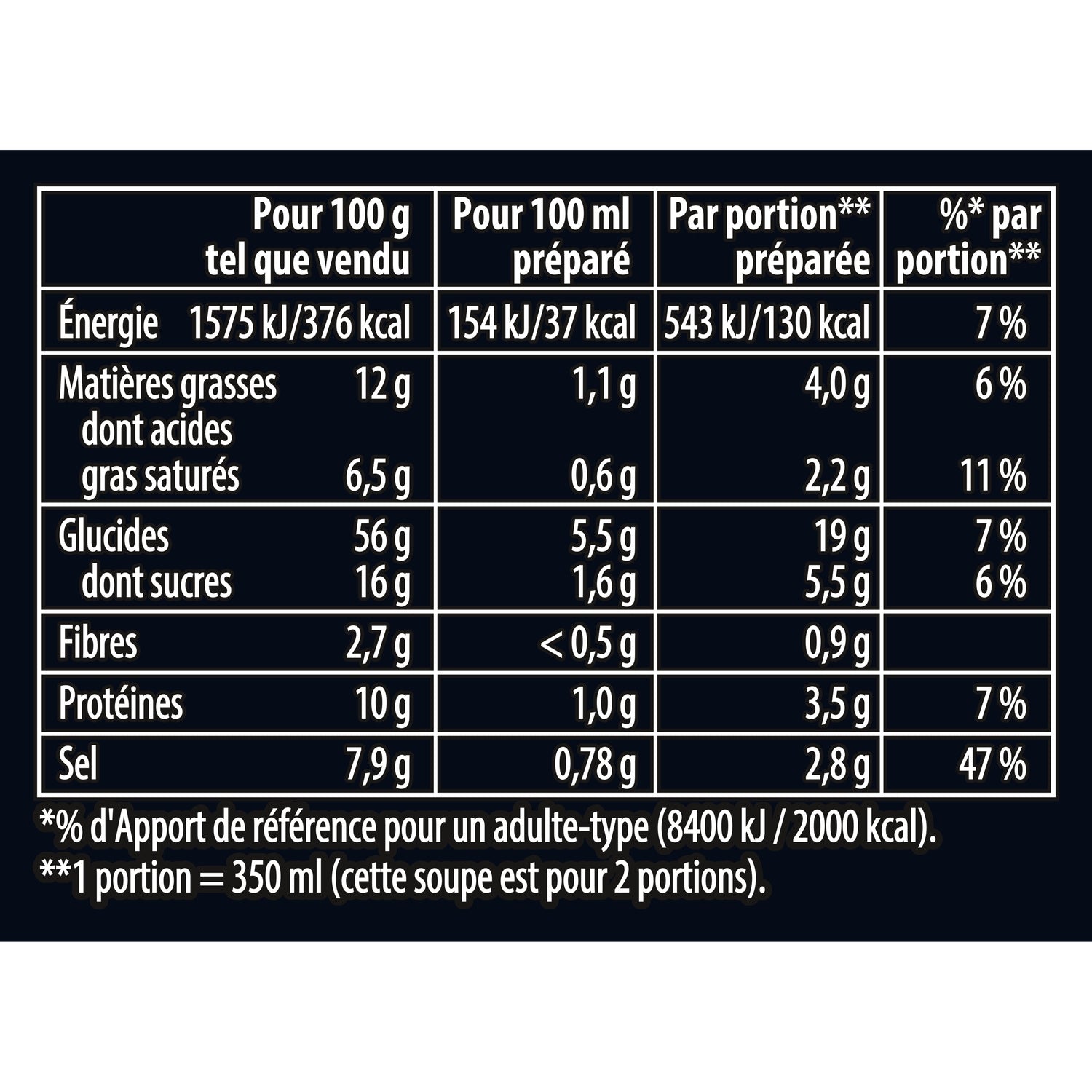 salt: 7.9 g / 100 g