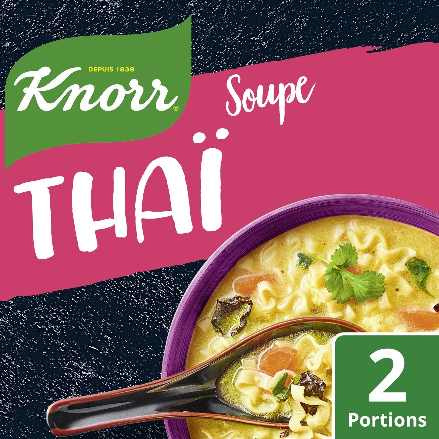 Discover the delicious Knorr ® Thai dehydrated soup that combines the taste of mushrooms and bean sprouts with the texture of noodles.,Travel for the time of a meal thanks to Knorr® dehydrated exotic soups.,A dehydrated soup prepared without coloring or flavor enhancer.,But what is dehydration? It consists of removing the water from the ingredients of our soups in order to preserve their quality and flavor without adding preservatives.,This format allows you to make 2 generous bowls of soup.,A comforting soup recipe ready in 5 minutes: Pour the contents of the sachet into 700 ml of cold water then bring to a boil. Simmer for 5 minutes. It's ready!
