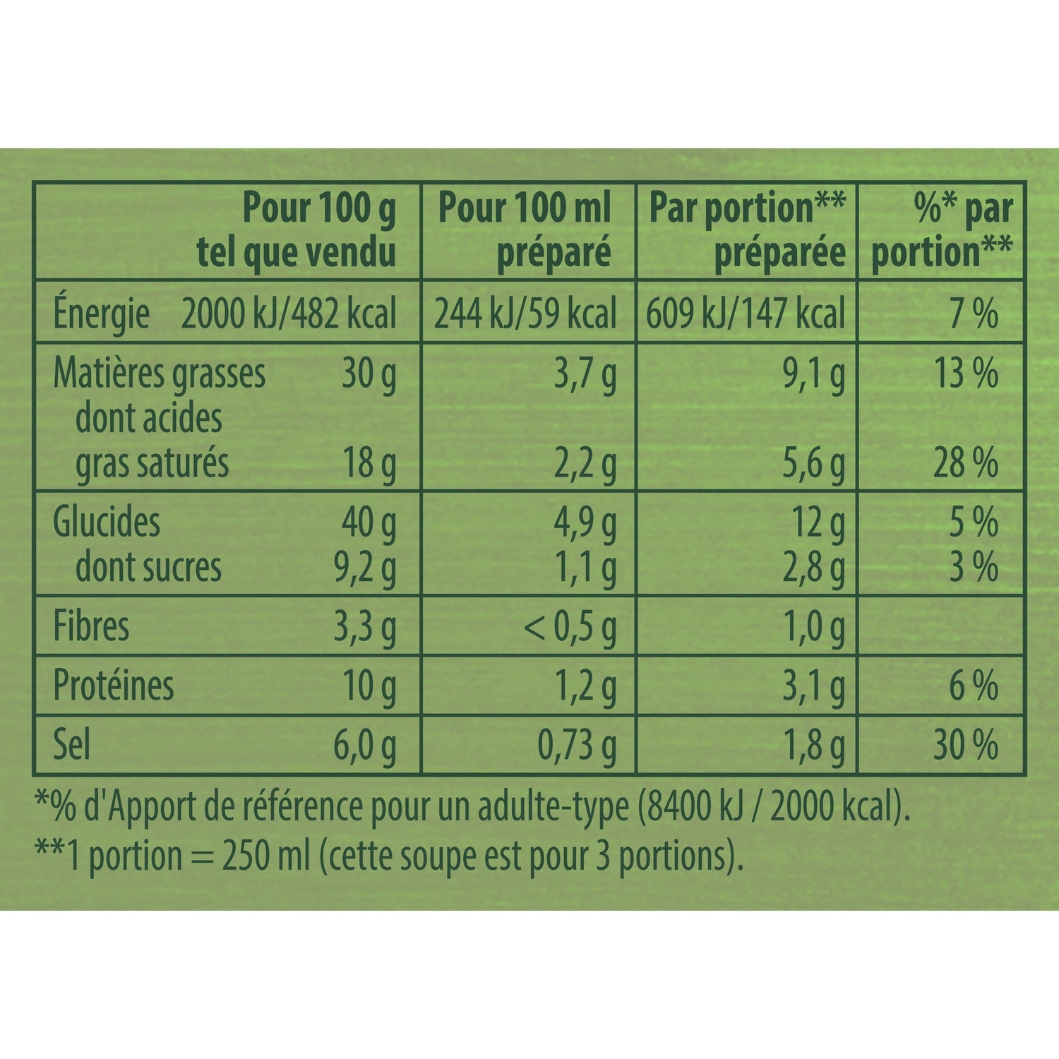 The information presented (ingredients, nutritional values, usage instructions, etc.) is provided for informational purposes only and may vary depending on supplies. We invite you to systematically check the information on the packaging before consumption. Non-contractual photo - the appearance, packaging or certain details of the product may differ from the illustration. The design of the packaging is subject to change .