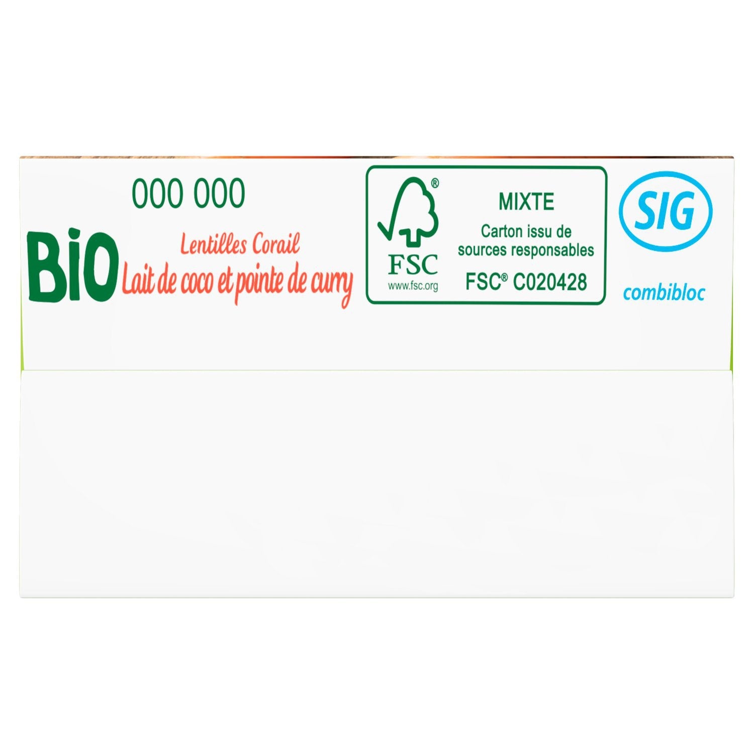 Organic Vegetable Soup (31%), coconut milk and coral lentils.