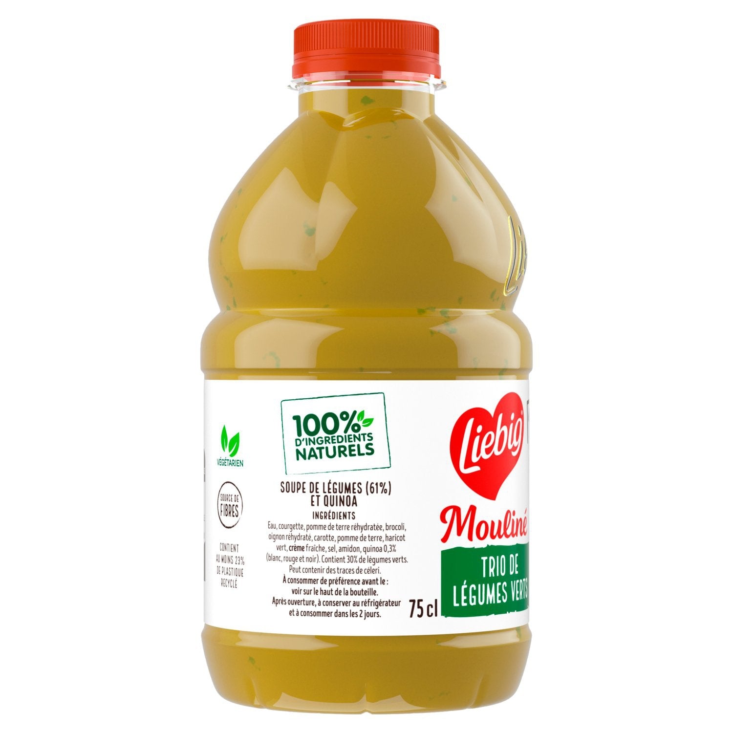 Ingredients: water, zucchini, rehydrated potato, broccoli, rehydrated onion, carrot, potato, green bean, fresh CREAM, salt, corn starch, quinoa 0.3% (white, red and black), Contains 30% green vegetables. May contain traces of CELERY.