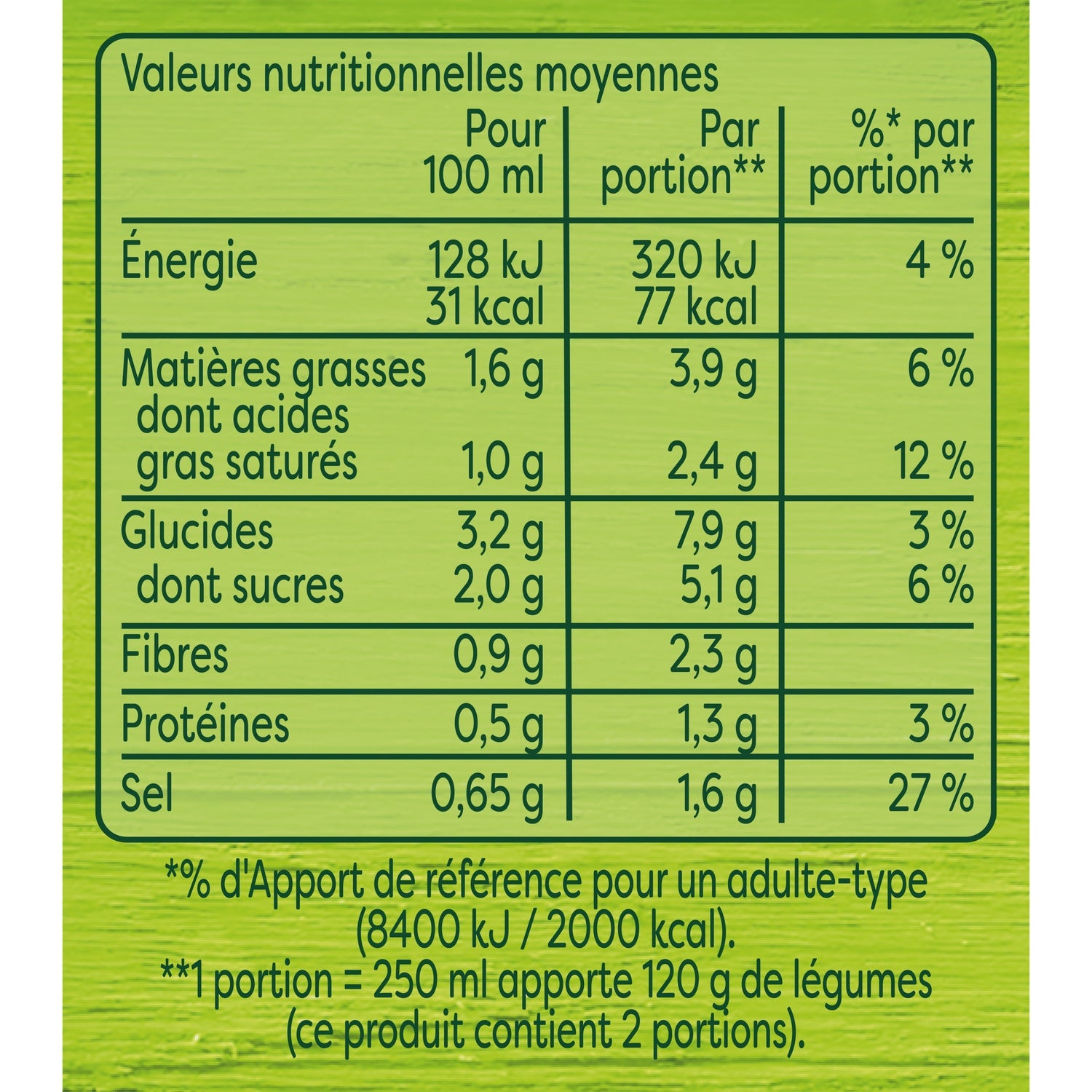 A Nutri-Score B soup made with 100% natural ingredients and sustainably grown vegetables, for a simple and flavorful meal. This vegetarian, vegetable-rich soup is prepared without flavor enhancers, colorings, or preservatives (like all liquid soups on the shelf).