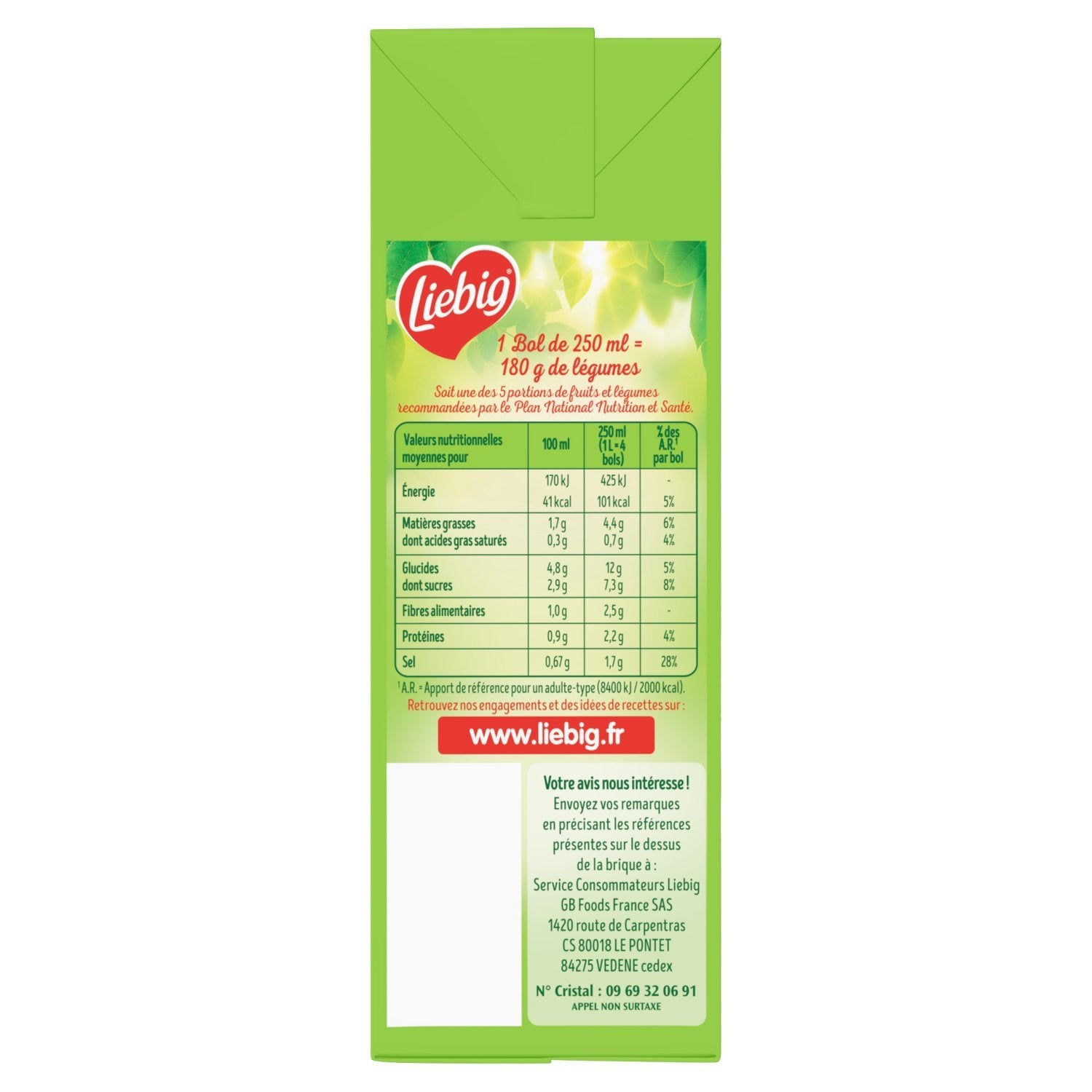 Treat yourself with our delicious Liebig soup recipes. Whether smooth or pureed, these soups have been lovingly prepared in our factory in France (EU and non-EU vegetables) since 1962 with 100% natural ingredients. Our vegetables are carefully selected and picked at their peak by our producers. To ensure their preservation without the addition of preservatives, our soups are heated at a high temperature before being packaged in cartons. Our quality team checks our soups daily to ensure the best products. Find these soups in a 1L family carton. Like all soups in the ambient section, Liebig is the inventor of the carton soup, a packaging that preserves the quality of vegetables for several months without the addition of preservatives. This Liebig recipe is made in our factory near Avignon in Provence. Our local teams are committed to offering you quality products made with carefully grown vegetables harvested at their peak. For more information about our history or our recipes, visit www.liebig.fr