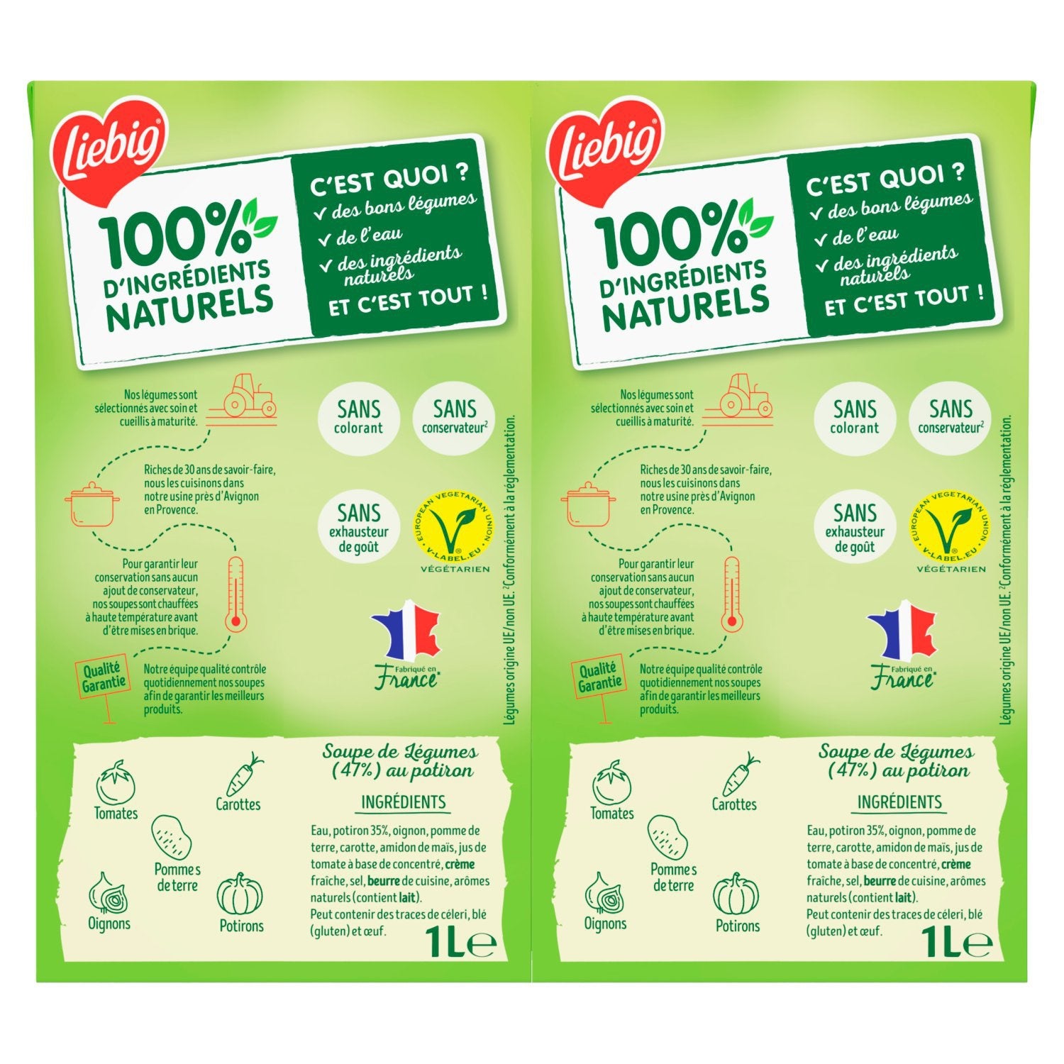 The sweetness of Pumpkin, simply in this creamy and delicious recipe. Tomato Carrot Potato Onion Pumpkin 100% natural ingredients Liebig® is committed There's love at Liebig® and it shows in our soups! ✓ Preservative-free* ✓ 1 Bowl = 1 portion of Vegetables ✓ Source of Fiber ✓ Made in France *In accordance with Guaranteed Quality regulations We select the best vegetables grown in open fields and picked when ripe. With 30 years of know-how, we cook them in our factory near Avignon in Provence. To guarantee their preservation without any added preservatives, our soups are heated to a high temperature before being put in cartons. Our quality team checks our soups daily to guarantee the best products.
