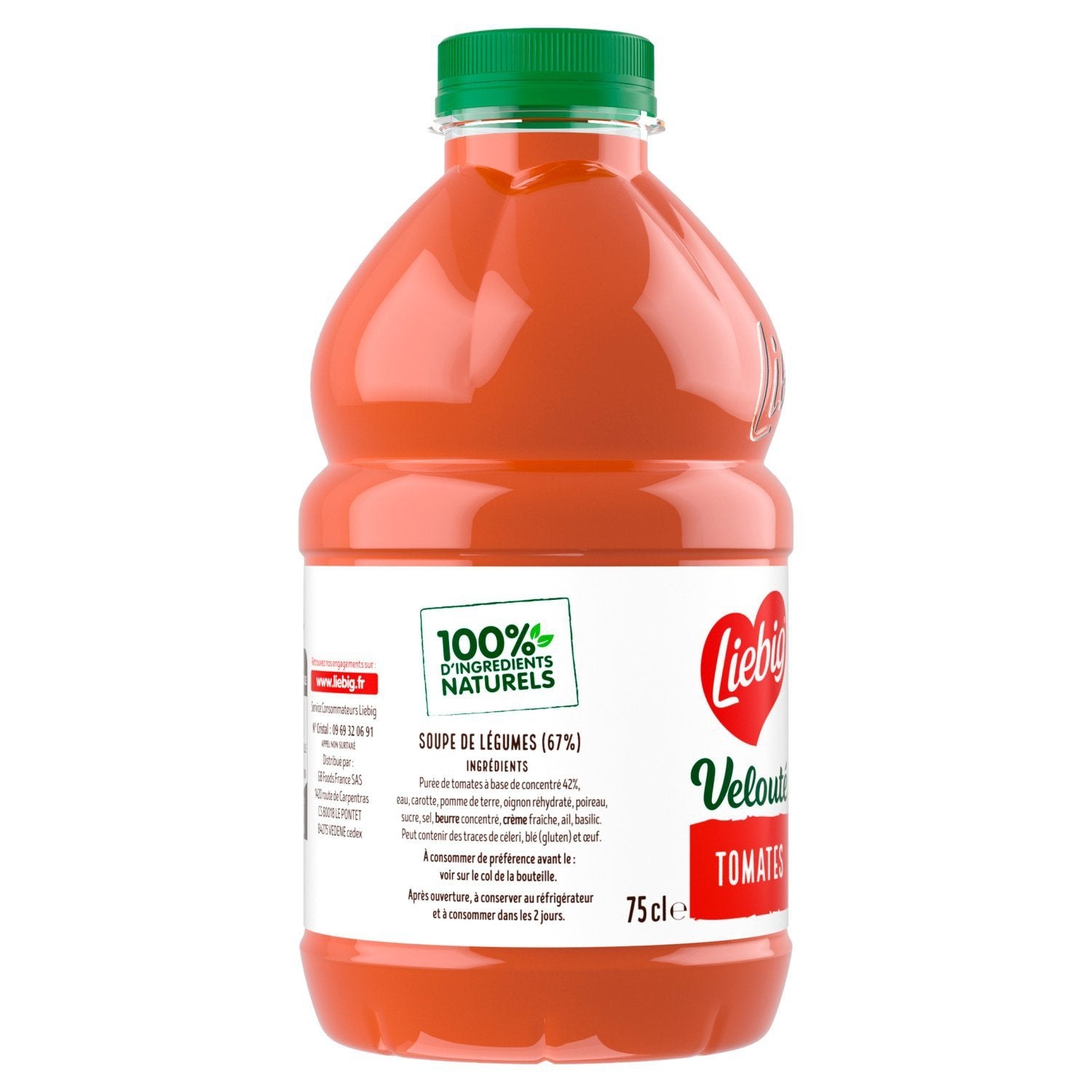 Treat yourself to Liebig 100% French vegetable bottled soups. These soups are cooked with 100% natural ingredients, without preservatives² and are a source of fiber. Whether smooth or pureed, these soups are sure to surprise you. Find these family-sized soups in 75cl bottles. ²Like all soups in the ambient section, Liebig is the inventor of the soup carton, a packaging that preserves the quality of vegetables for several months without adding preservatives. This Liebig recipe is made in our factory near Avignon in Provence. Our local teams are committed to offering you quality products made with vegetables grown with care and harvested at maturity. For more information on our history or our recipes, visit www.liebig.fr