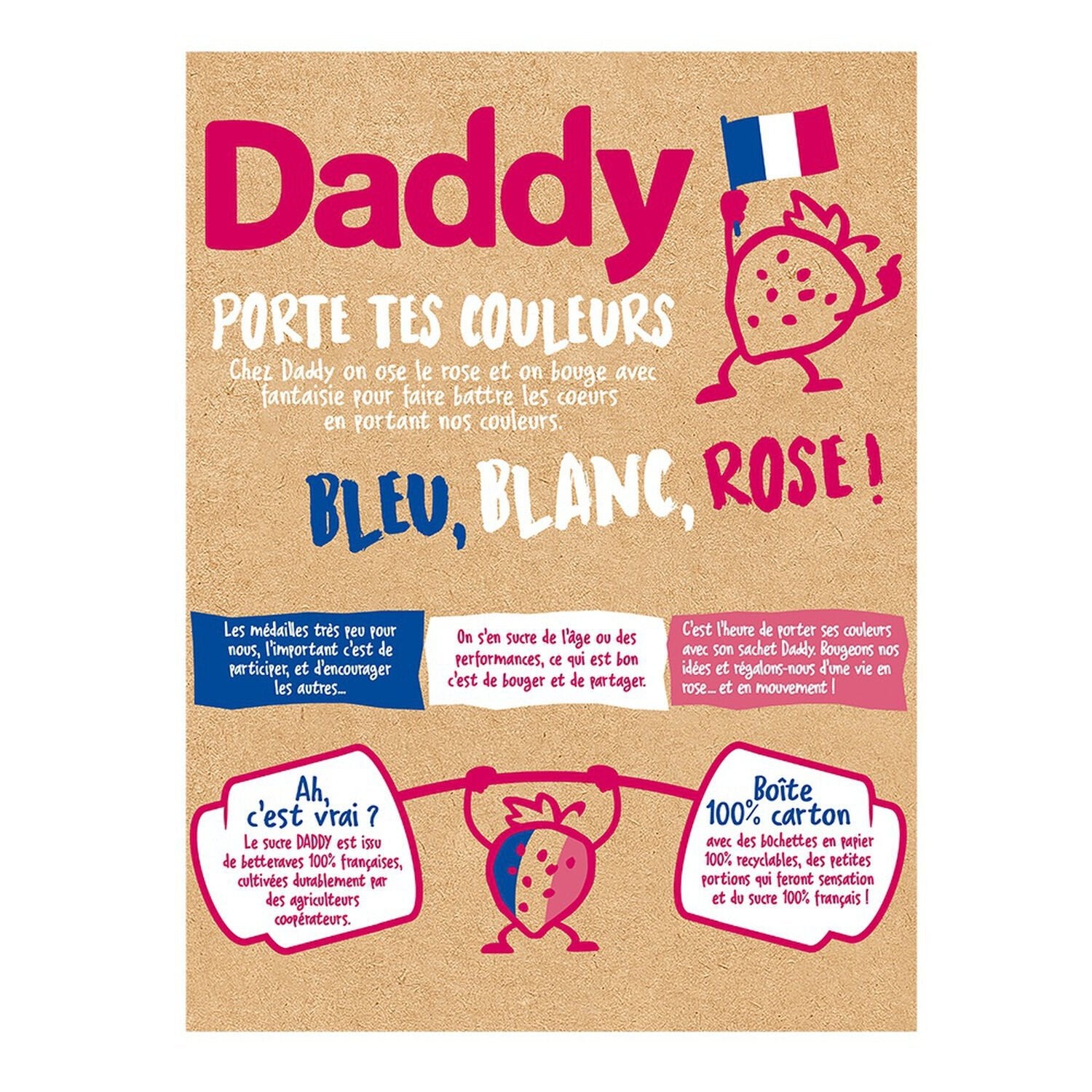 Ideal for sweetening a coffee, drawing a line under the banal, adding style to your yogurt, putting a little beauty in the milk, sprucing up your decor, impressing the gallery....When you're proud of your roots, you say so... Daddy sugar comes from beets grown in France by our cooperative farmers... Daddy keeps an eye on the grain....of sugar.