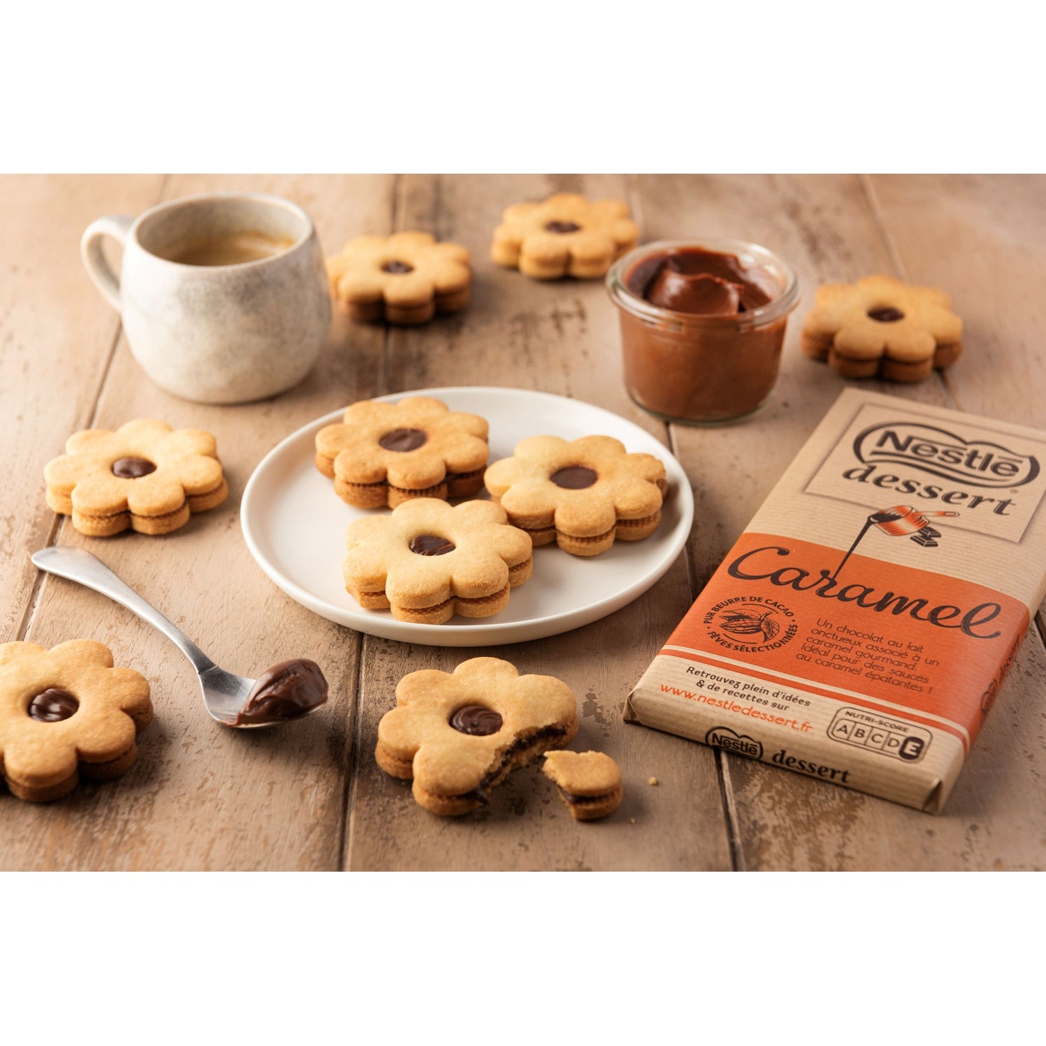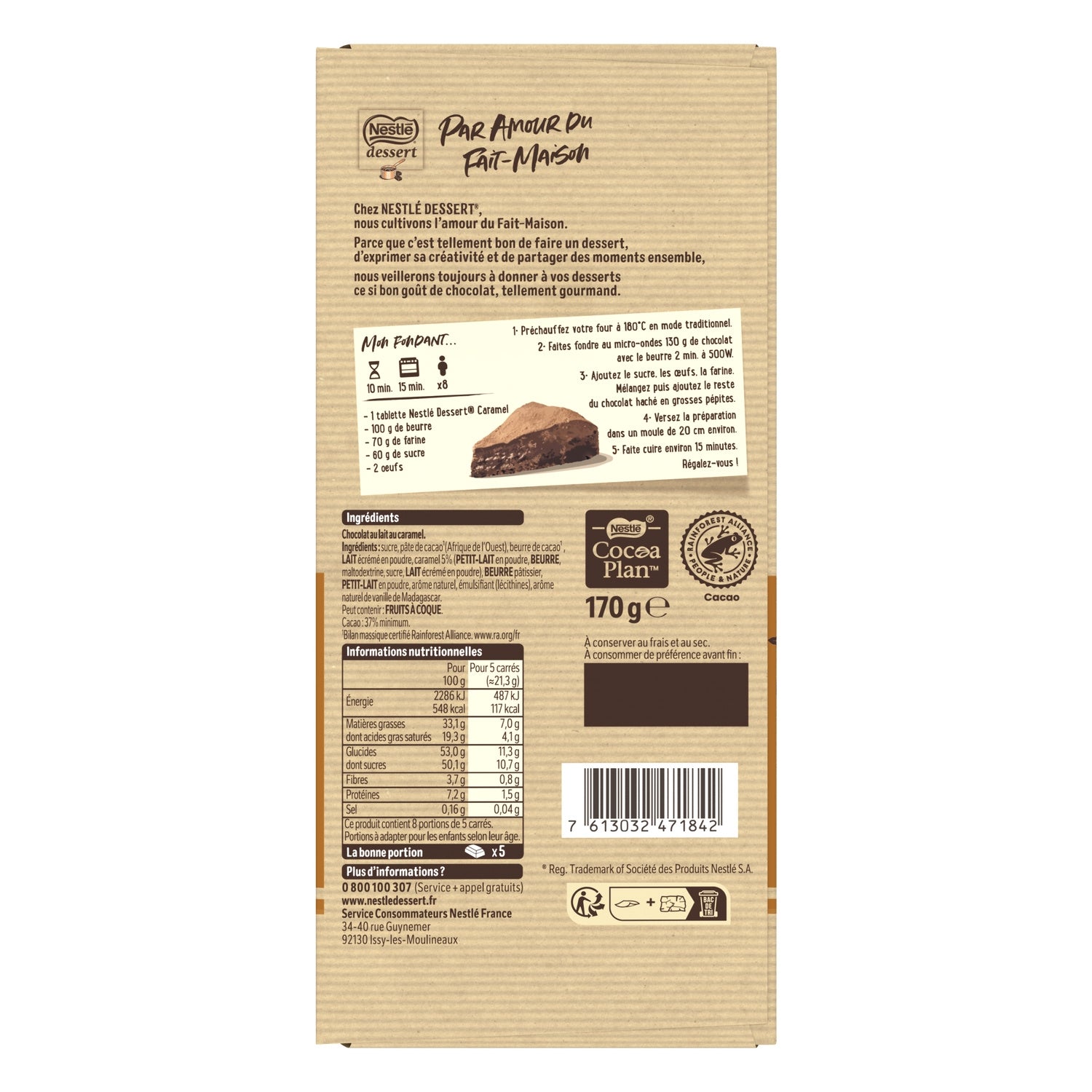 NESTLÉ DESSERT Caramel is a pure cocoa butter milk chocolate combined with a delicious caramel. It's the perfect baking chocolate bar for creating a stunning fondant! With the Cocoa Plan, NESTLÉ DESSERT supports farmers in improving the quality of their cocoa.