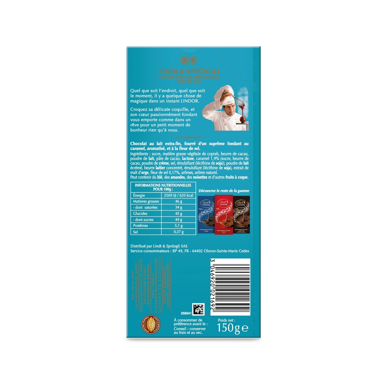 Discover the LINDOR Caramel Pointe de Sel bar: a passionately melting caramel heart with a hint of salt, coated in a delicate milk chocolate shell.