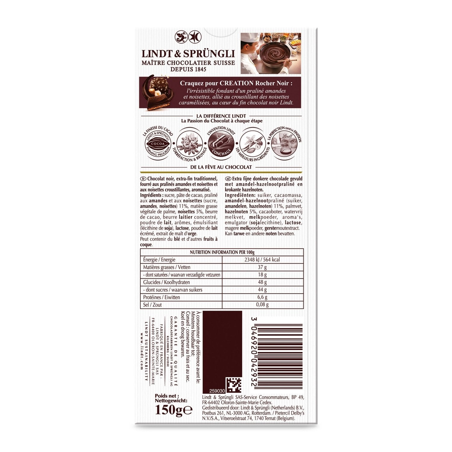 This gourmet creation is made up of an almond and hazelnut praline coated in fine Lindt dark chocolate.