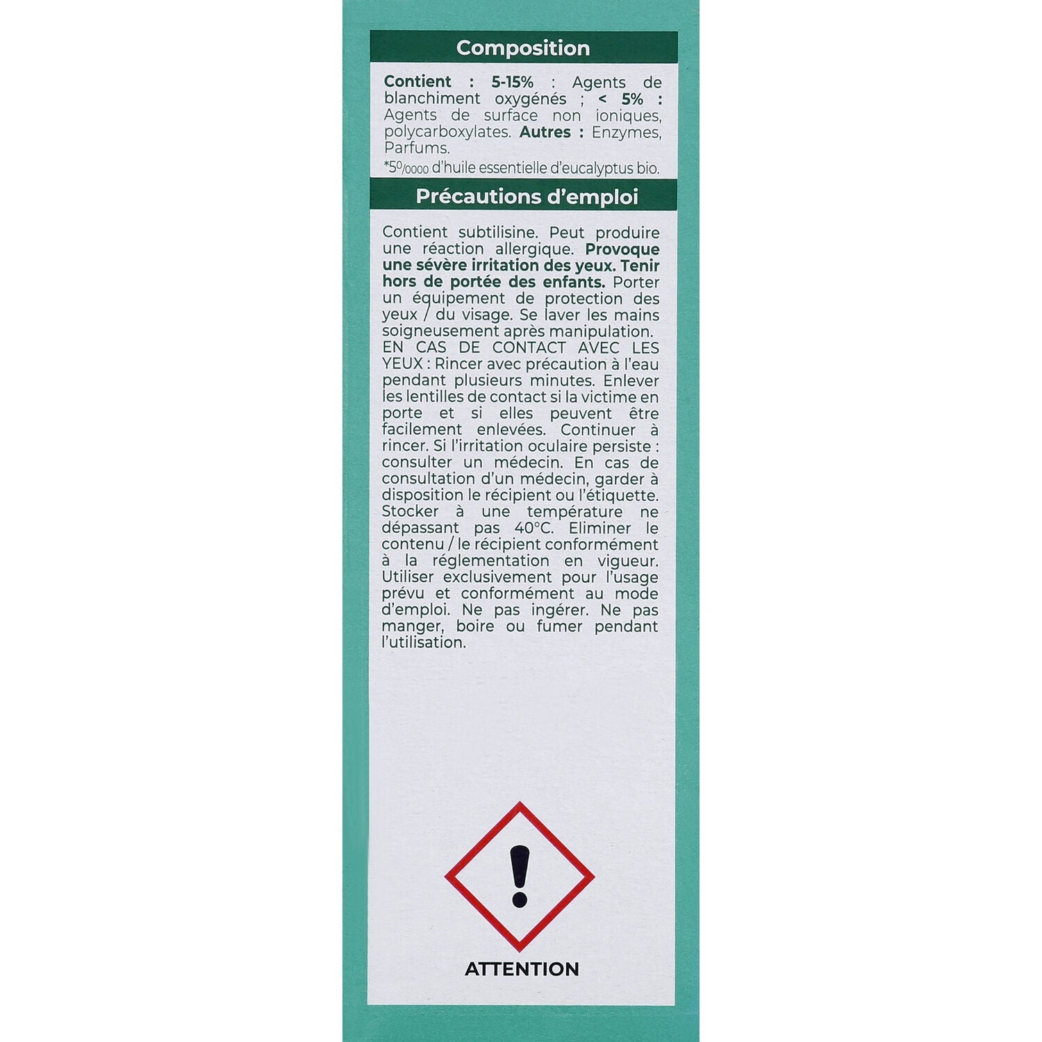 5-15%: oxygenated bleaching agents, <5%: non-ionic surfactants, polycarboxylates. Others: Enzymes, Perfumes