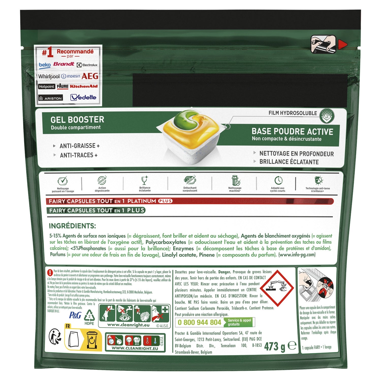 Fairy Original capsules clean from the first wash. They are even effective on encrusted grease. ,Integrated salt and rinse action function, including glass and silver protection. For a dishwasher that is always clean and free from unpleasant odors. The ultra-soluble capsule dissolves quickly.