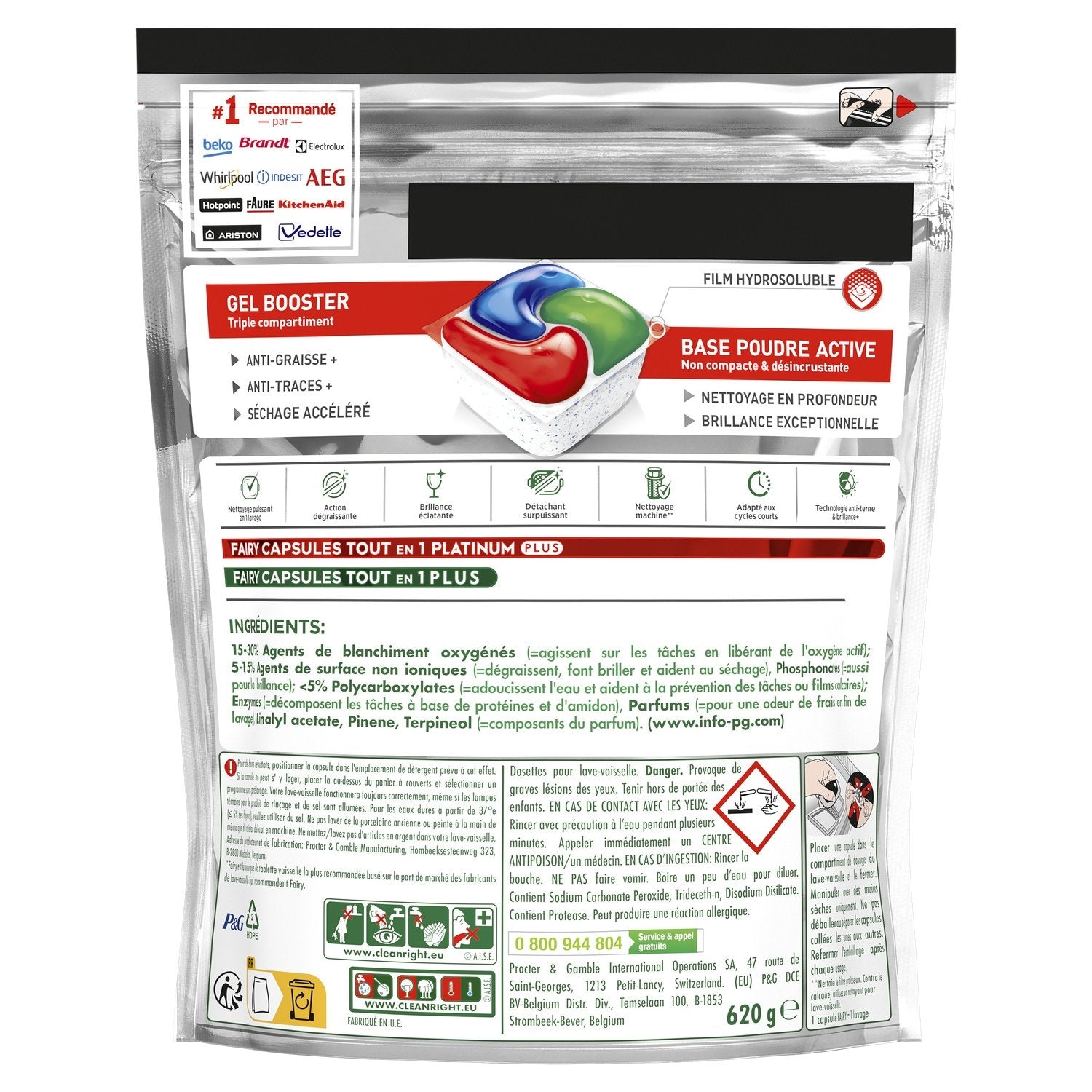 Fairy Platinum Plus All-In-One Dishwasher Tablets with Anti-Dull Technology, Regular, 40 Capsules, Optimal Cleaning for Dishes as Clean as New, Restores Shine and Prevents Limescale