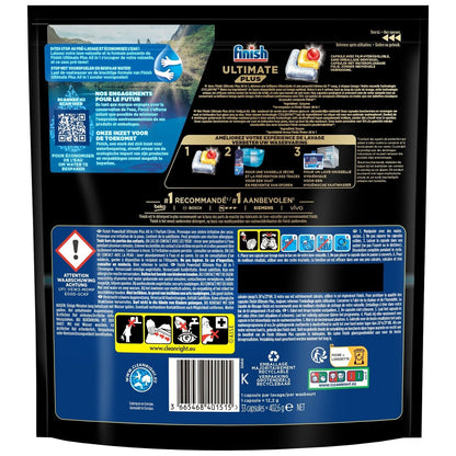 With Finish Ultimate Plus All in 1 Lemon, get a sparkling shine and intense cleanliness the first time, every time. Our new technology, CyclesyncTM, releases ingredients* sequentially for optimal cleaning. Thanks to its 4 actions throughout the wash cycle, this technology is effective even against burnt-on stains and without the need for pre-washing. Our capsules protect and care for your dishes while maintaining their shine wash after wash. *Ingredient: enzyme Our Ultimate performance with 15% (by weight) fewer chemical compounds than our classic Finish compact powder tablets (on average vs. Finish Power). Finish is the #1 brand recommended* by the biggest dishwasher brands. Thanks to our expertise, major dishwasher brands trust us and recommend us *Finish is the most recommended detergent based on market share of dishwasher manufacturers who recommend Finish