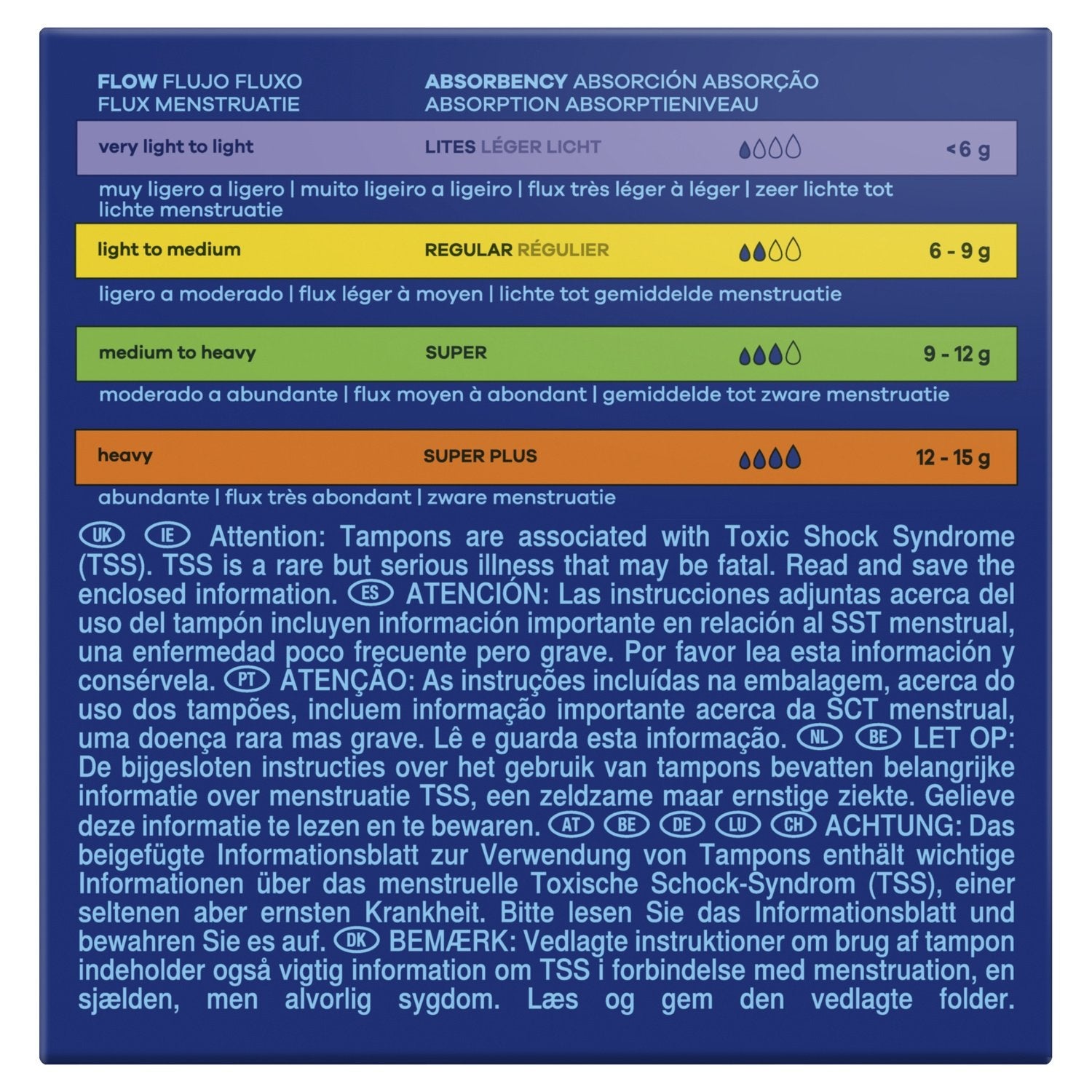 Tampax Compak Super Plus tampons offer discreet protection for heavy flow days. Tampax Compak tampons offer period protection in a convenient size. They are fragrance-free. Tampax Compak tampons have a compact plastic applicator and a rounded tip for easy and comfortable insertion. The absorption channels absorb the flow directly at the top of the tampon and trap it inside. Plus, their double protective skirt helps prevent leaks for confident protection. Confident protection so you can move freely. The best Tampax Compak tampon that offers absorbency for heavy flows. Try Tampax Pearl Compak, the best tampon in the Tampax range for protection and comfort.
