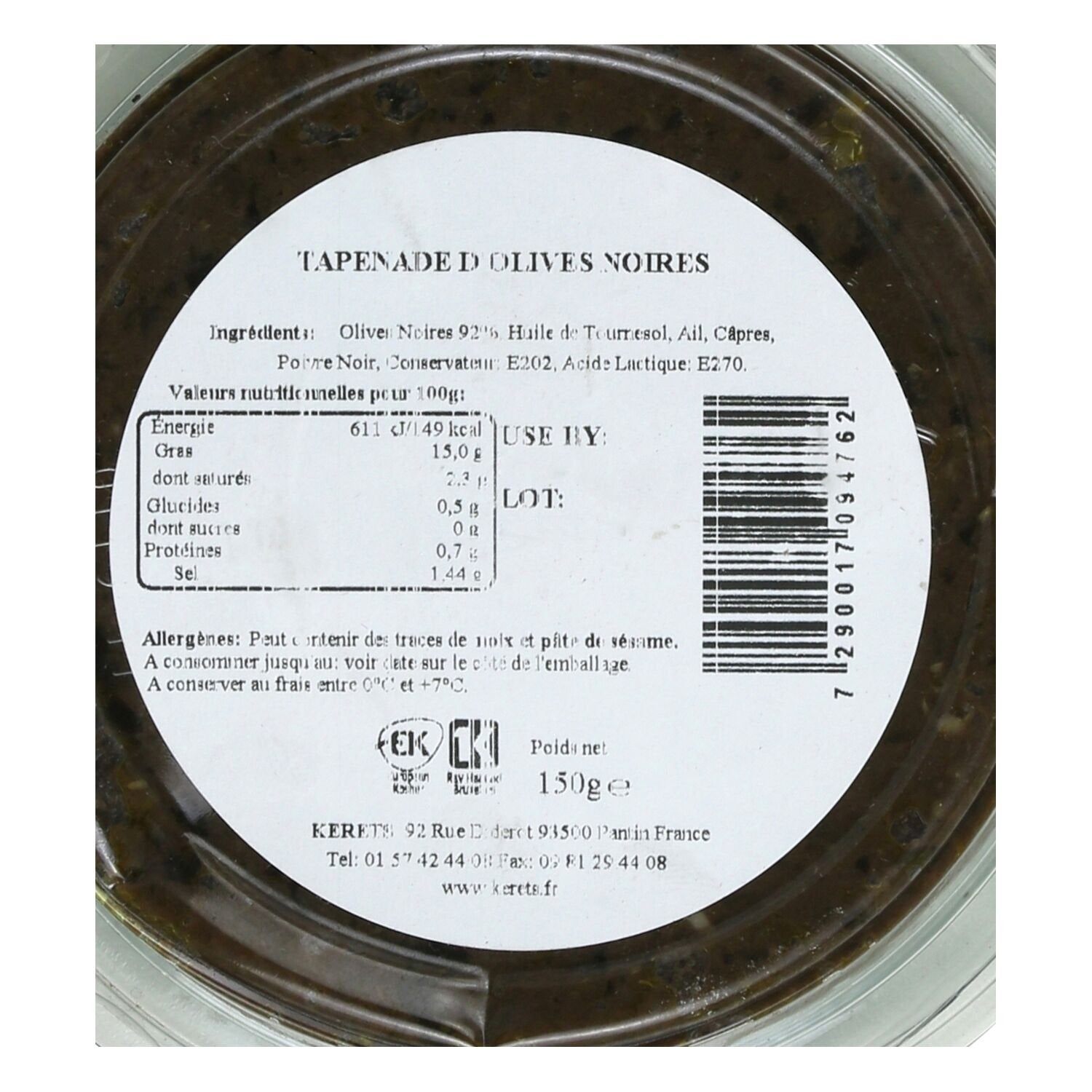 Black olives 92%, sunflower oil, garlic, capers, black pepper, preservative: E202, lactic acid: E270.