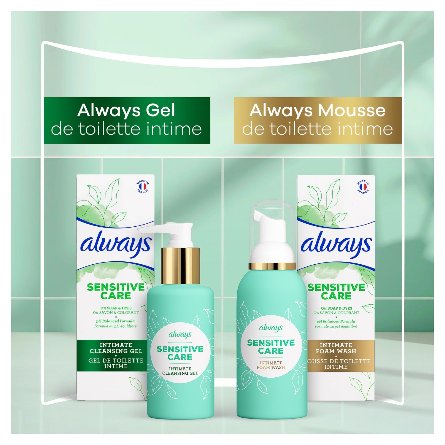 Always Intimate Cleansing Gel, Daily Cleansing, Sensitive Care, Sensitive Skin, Naturally Origin Ingredients, Alcohol-Free, 0% Soap and Colorant, Neutral Odor, Dermatologically Tested, Gentle Formula, PH Balanced, Designed for the Intimate Area