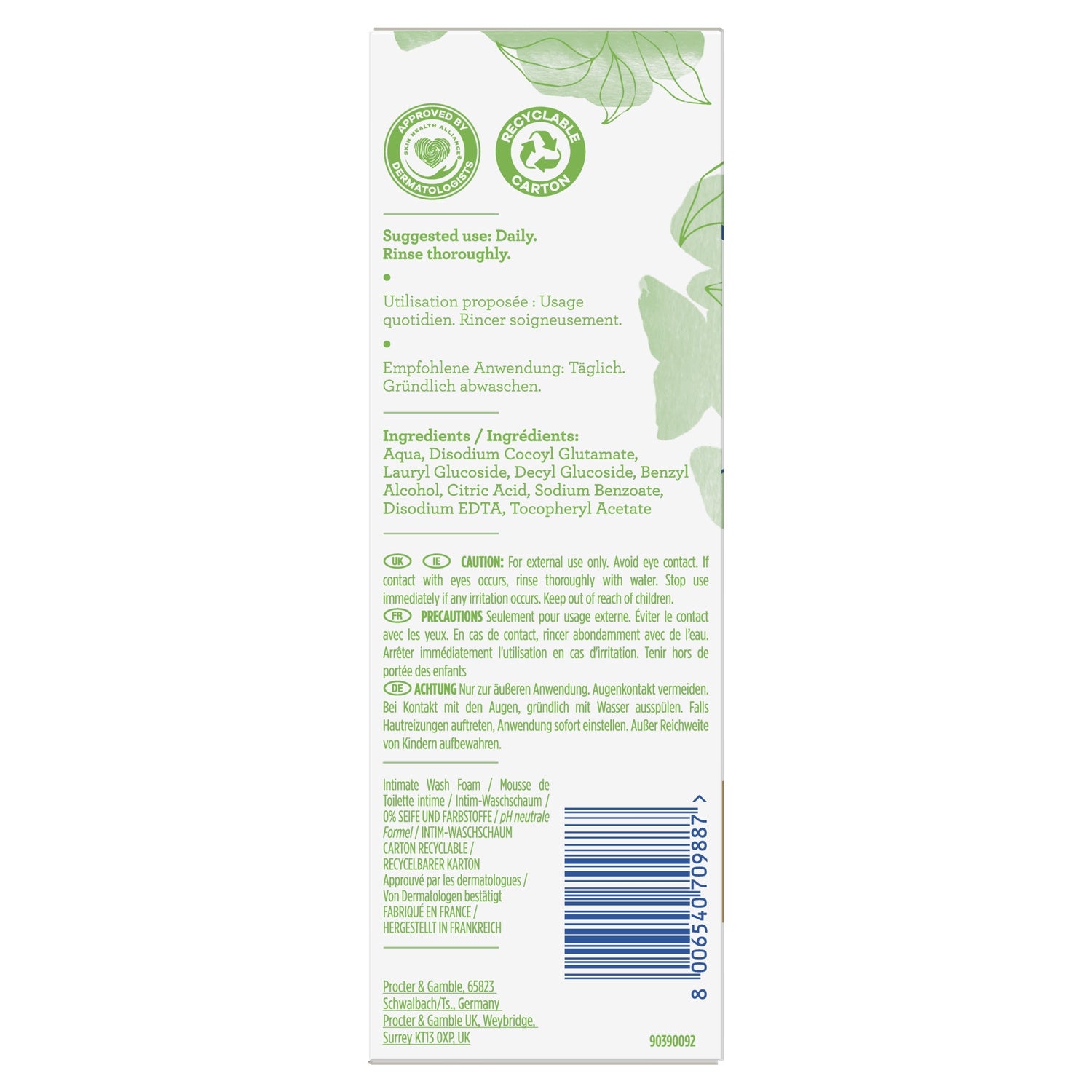 Always Intimate Cleansing Foam, Daily Cleansing, Sensitive Care, Sensitive Skin, Naturally Sourced Ingredients, Alcohol-Free, 0% Soap and Colorant, Neutral Odor, Dermatologically Tested, Gentle Formula, PH Balanced, Designed for the Intimate Area