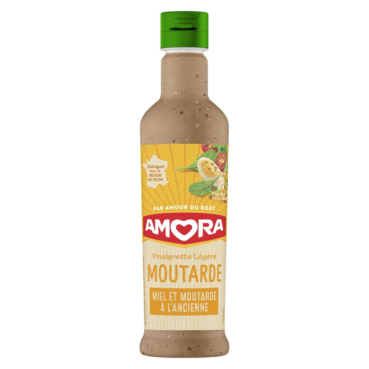 Enjoy Amora® Light Mustard Vinaigrette: a light and tasty vinaigrette, enhanced by the taste of wholegrain mustard.,A delicious recipe combining the sweetness of honey with the character of wholegrain mustard, ideal for seasoning all your everyday salads.,Our tasty Light Mustard Vinaigrette is made in France in the Dijon region.,With Amora® Light Mustard Vinaigrette, share more than just meals, share the best.,The Light Mustard Vinaigrette will perfectly accompany your endive salads with Roquefort and walnuts.,A light vinaigrette prepared with love, available in a family size of 380 ml!